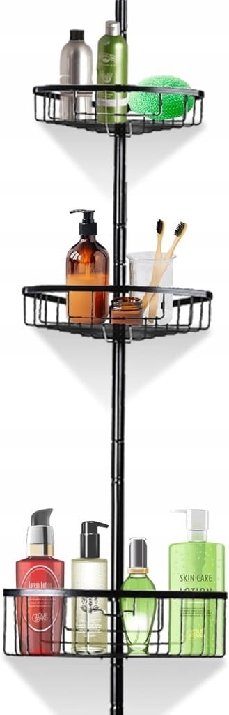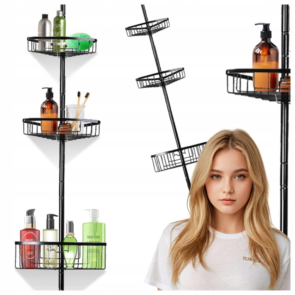 Półka prysznicowa teleskopowa – regulowana, bez wiercenia, czarna