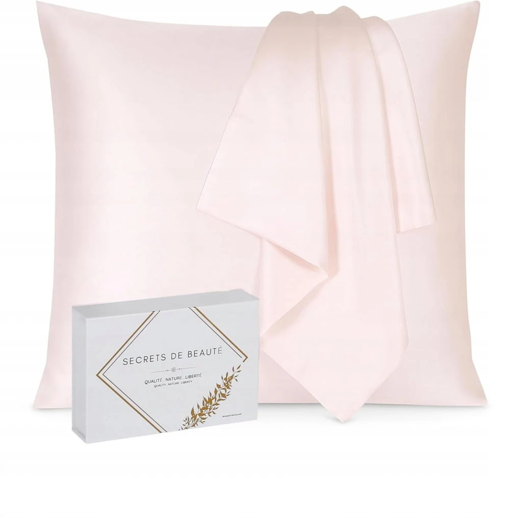 Poszewka na poduszkę z jedwabiu morwowego 100% naturalna, 22 momme, najwyższej jakości, klasa 6A, bez chemikaliów, organiczna – skóra wrażliwa, afro, kręcone, tłuste, zapobiegające wypadaniu, różowy prezent, 65 x 65 cm
