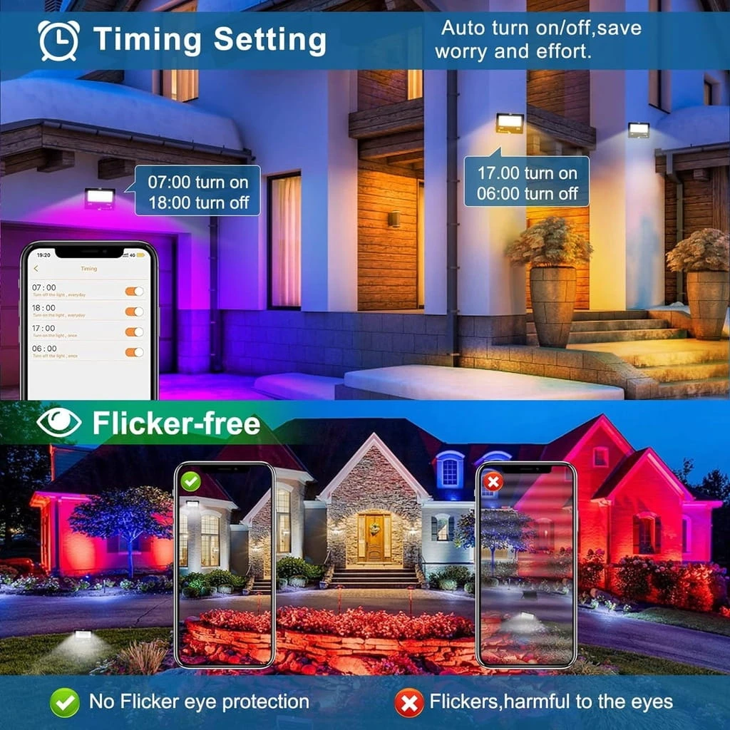 - Wielokolorowe światło powodziowe 30 W. Reflektor LED rgb ma możliwość przyciemniania 16 milionów kolorów do wyboru, w tym ciepłego białego światła o temperaturze 2700 K. Wodoodporny IP66, reflektor LED do użytku na zewnątrz doskonale sprawdza się w deszczu, deszczu ze śniegiem i śniegiem, z łatwością ze światłem stroboskopowym, skokowym lub pulsującym.