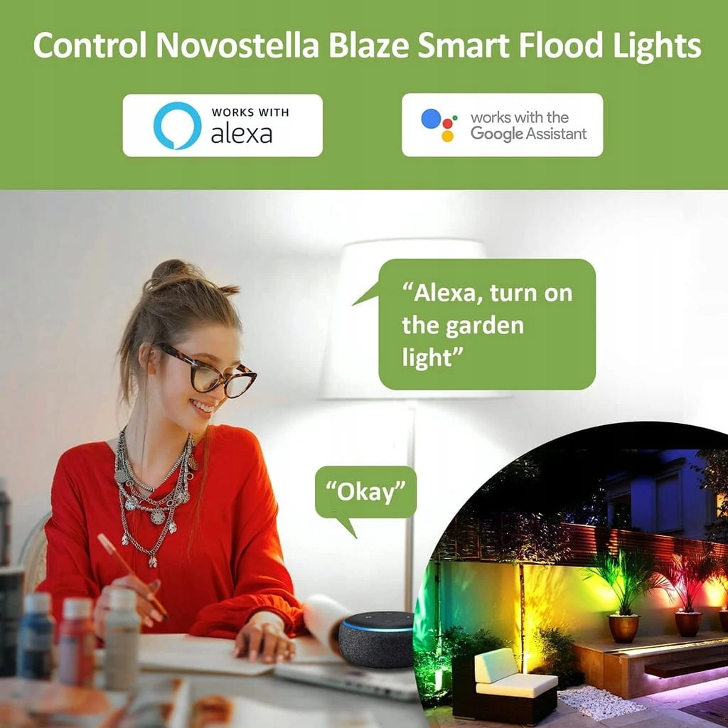 - NOVOSTELLLA Upgrade Blaze Serie . Reflektor RGB + inteligentny reflektor. Jasność jest zwiększona z 20 W do 25 W, a jasność koloru zwiększa się o 63%, co zapewnia 16 milionów kolorów o wysokiej jasności; antena jest stała, klienci nie muszą jej instalować samodzielnie, aby zapobiec wyciekom wody.
