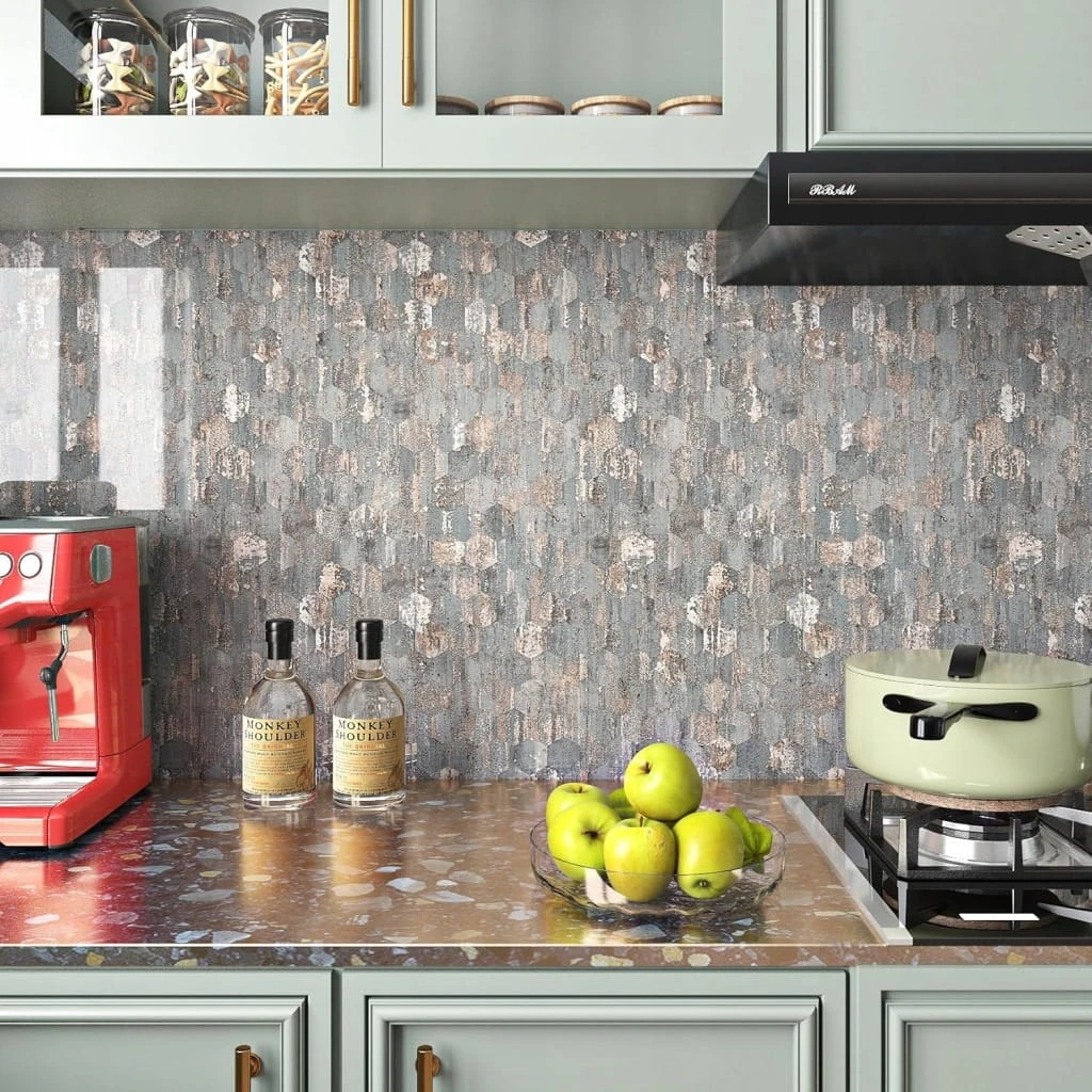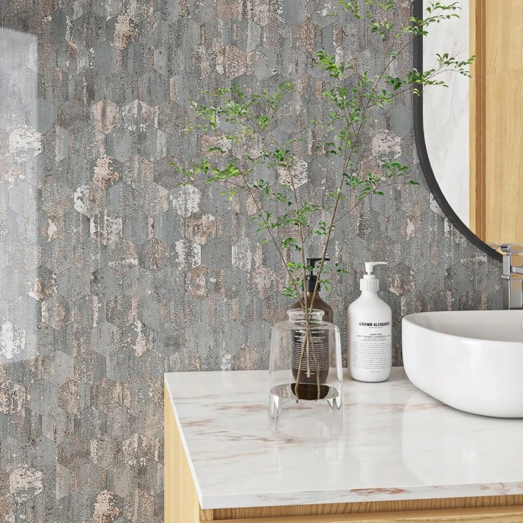Tapeta samoprzylepna Livelynine 40 cm x 10 m wodoodporna do łazienki, szaro-różowa, winylowa tapeta do kuchni, geometryczna, samoprzylepna, do kuchni, heksagonalnych mebli