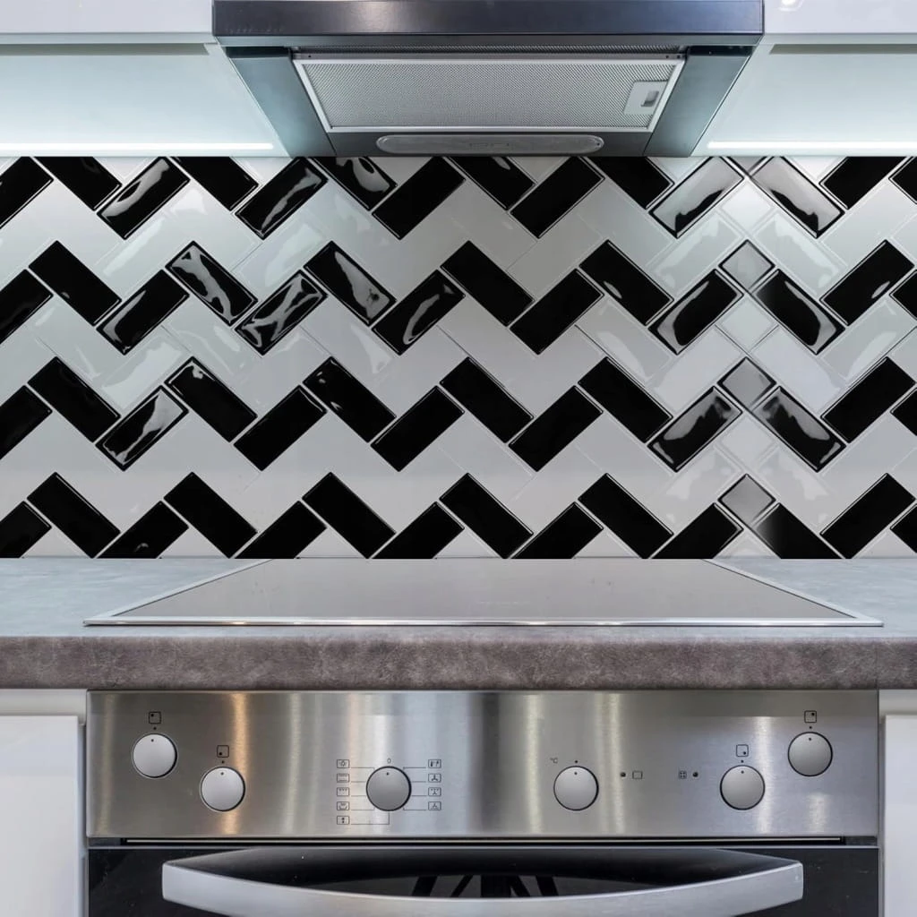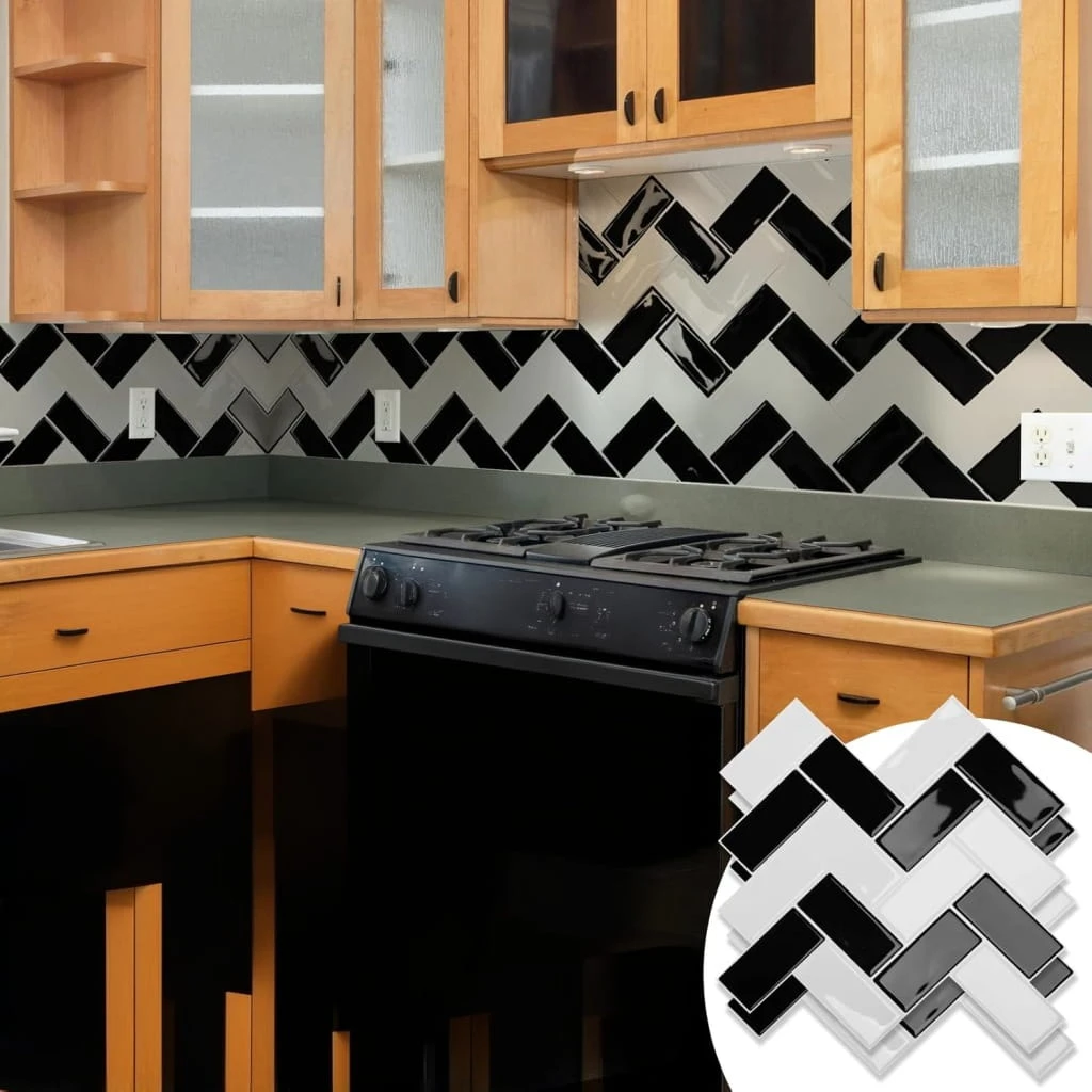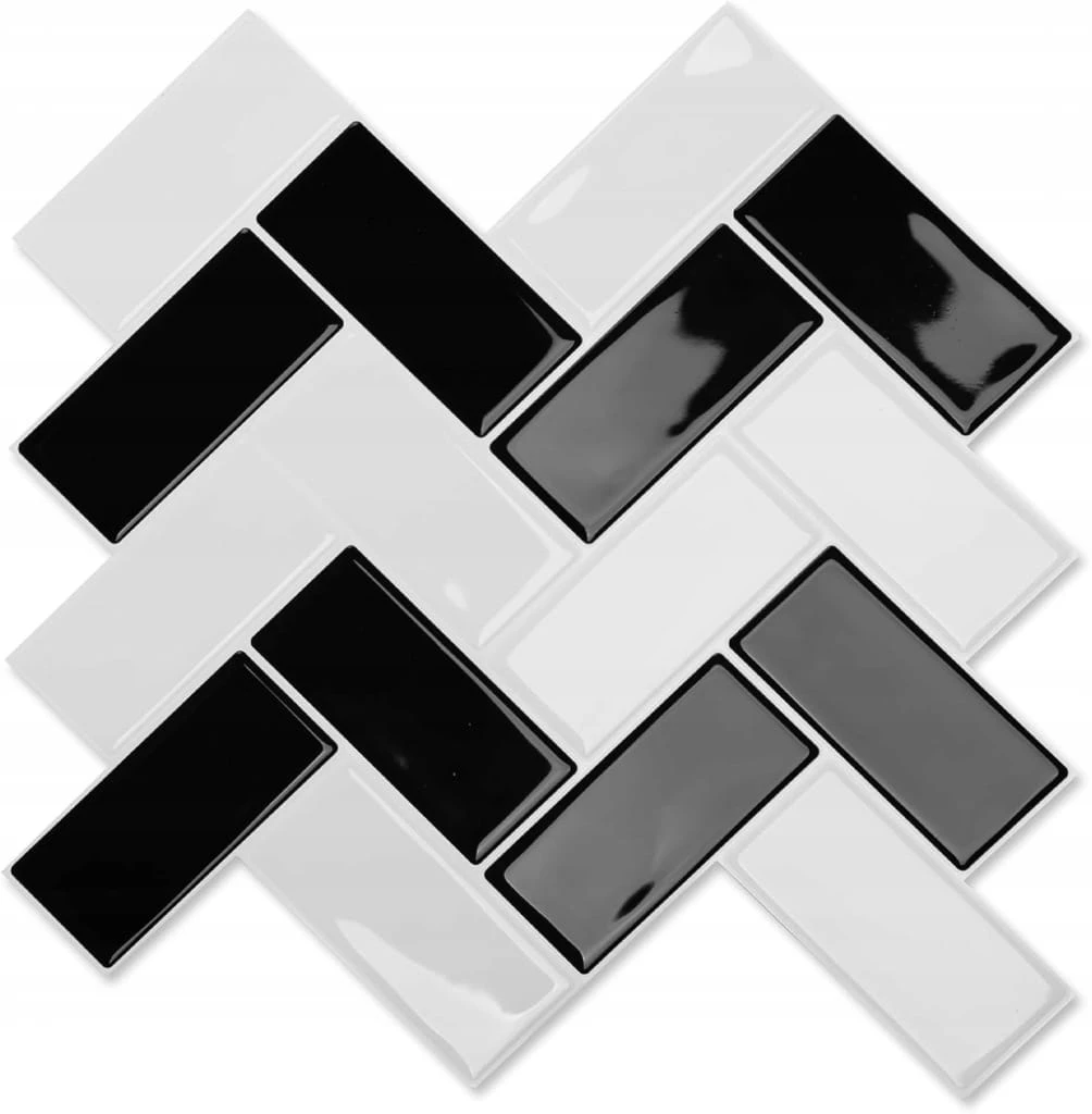 Art3d Samoprzylepne płytki ścienne 3D, naklejki na płytki, folia na płytki, w jodełkę, naklejki ścienne, wodoodporne, czarno-białe