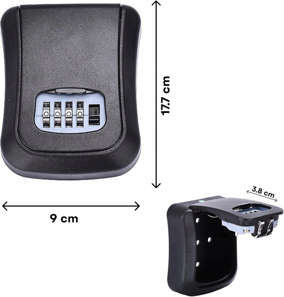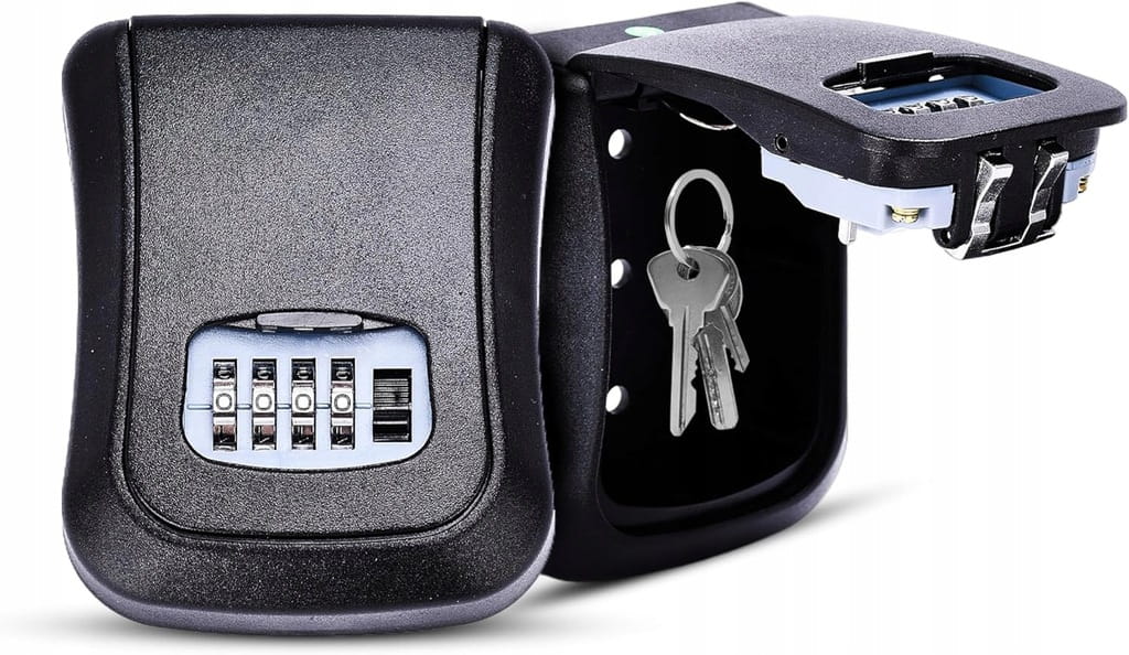 Sejf na klucze zewnętrzny – kasetka na szyfr/kod, metalowa skrytka (kłódka)