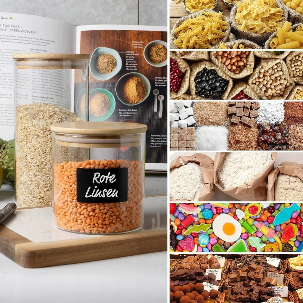 ✅ Różnorodne zastosowanie – szklane pojemniki na zapasy z pokrywkami mogą być stosowane na wiele sposobów dzięki praktycznemu wzornictwu. Słoik do przechowywania z pokrywką można wykorzystać również jako dekorację, w łazience lub piwnicy