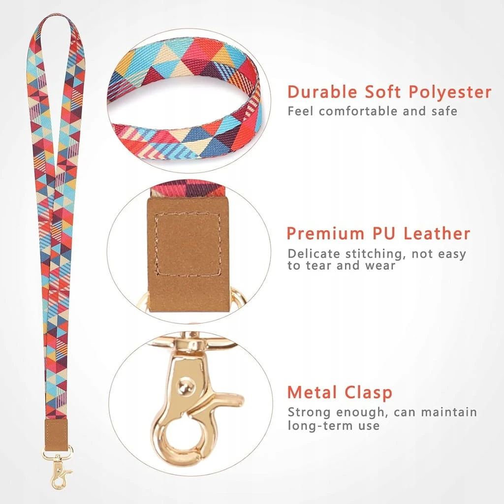 - ✅ Wygodne i trwałe. Nasze smycze wykonane są z miękkiego, wytrzymałego poliestru z nadrukowanym wzorem i wysokiej jakości skóry PU, abyś czuł się komfortowo i bezpiecznie. Metalowe zapięcie wysokiej jakości breloka jest wystarczająco mocne, może utrzymać długotrwałe użytkowanie
