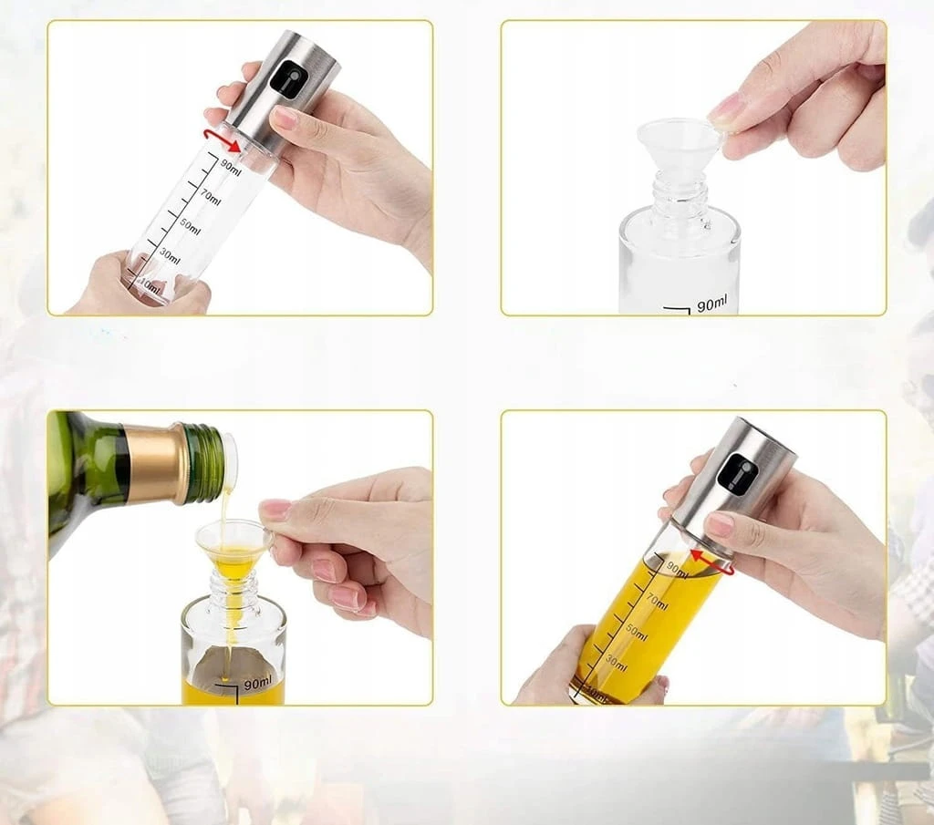 - ✅ Łatwy do kontrolowania: ta szklana butelka z dozownikiem oleju ma 100 ml, jest łatwa do odczytania i kontrolowania ilości oleju używanego do gotowania. Możesz ponownie napełnić i użyć wszystkich swoich ulubionych soli, dzięki czemu delikatna mgiełka nie będzie już marnować oleju do odpływu