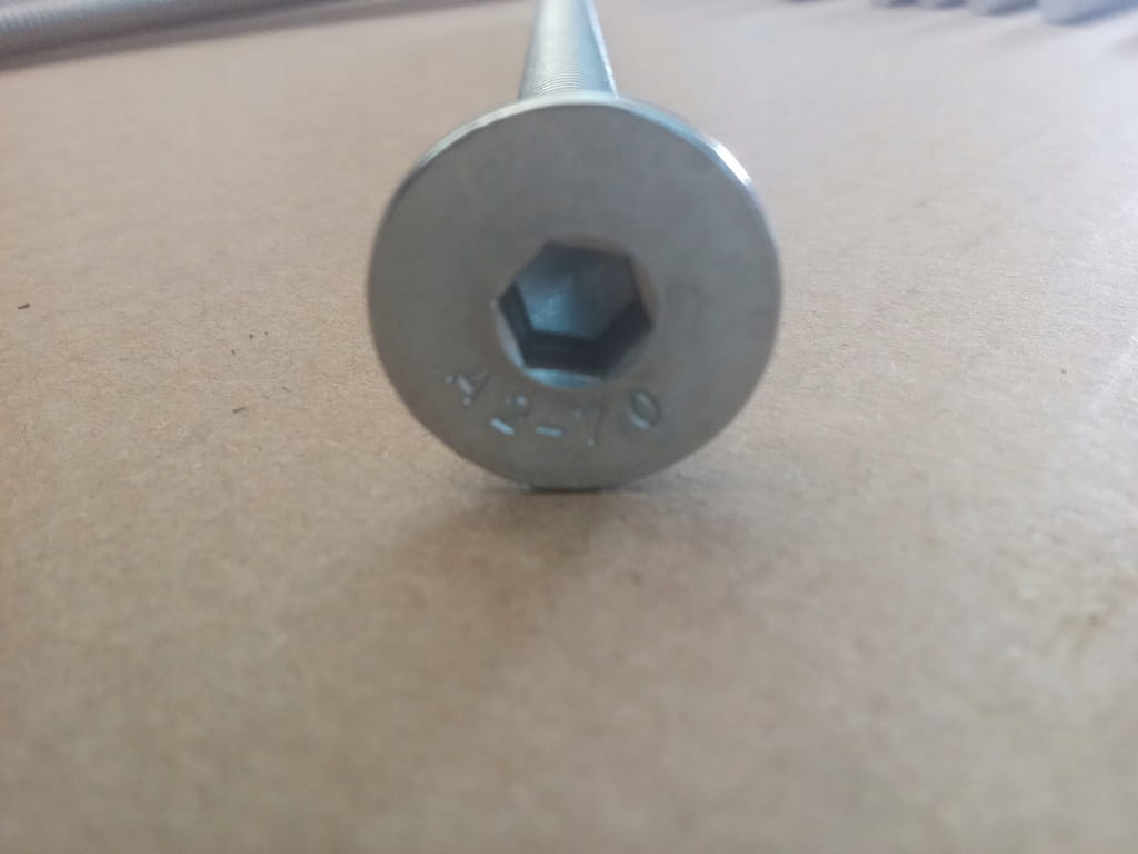 - Typ Śruby: Z łbem stożkowym (płaskim), gniazdo sześciokątne (imbus)