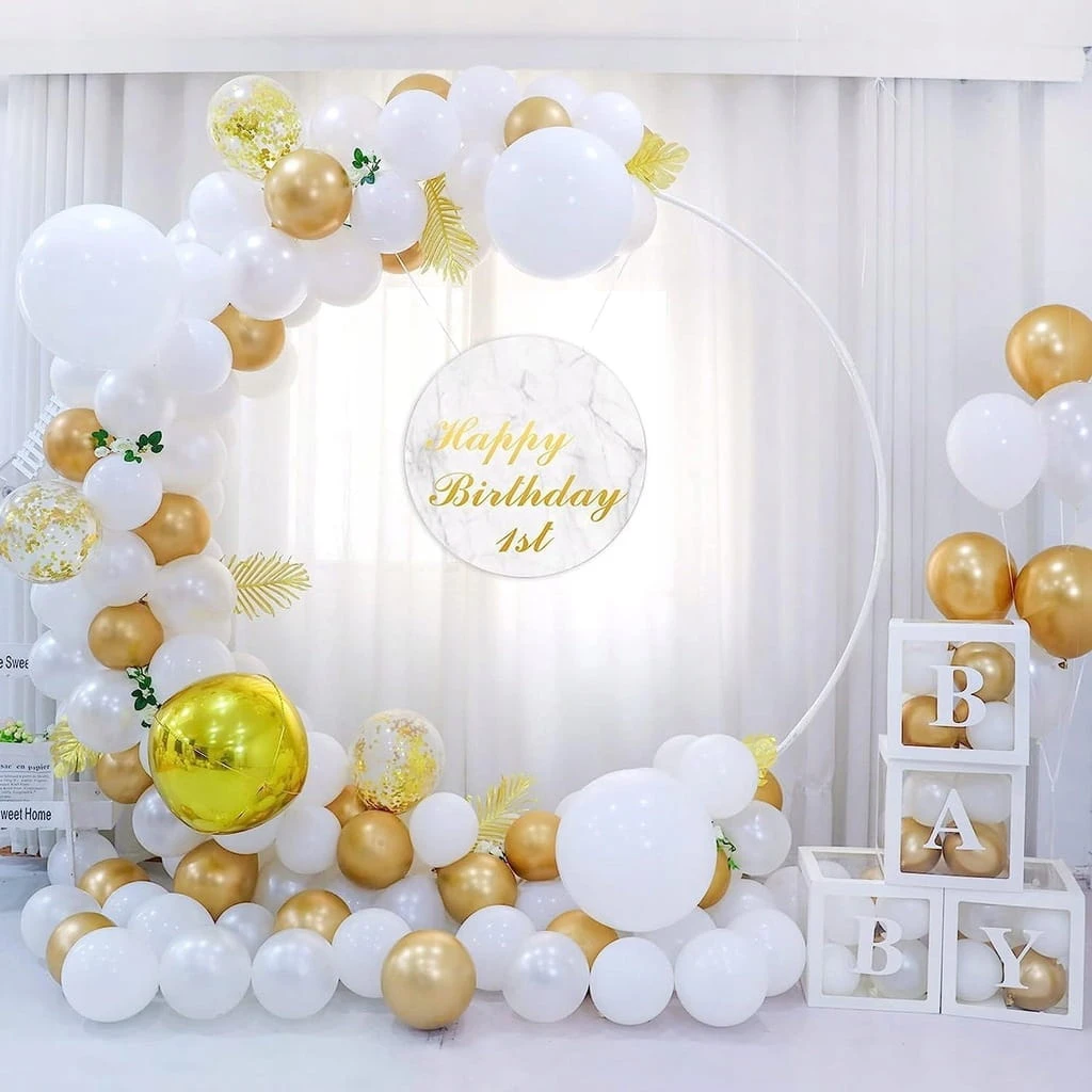 - ✅ Zestaw ramek do balonów: ten zestaw zawiera 16 prętów z włókna szklanego balonowego, 1 punkt samoprzylepny do balonów, 1 taśmę balonową, 1 łańcuch balonowy. Wykonany z wytrzymałego materiału PCW, jednoczęściowy, łatwy do przenoszenia i wielokrotnego użytku. Zamontowana rama pierścienia balonowego ma średnicę 180 cm.