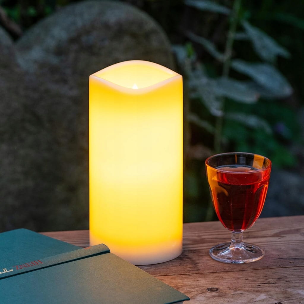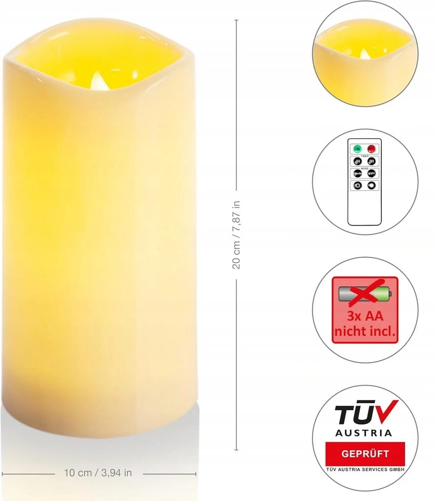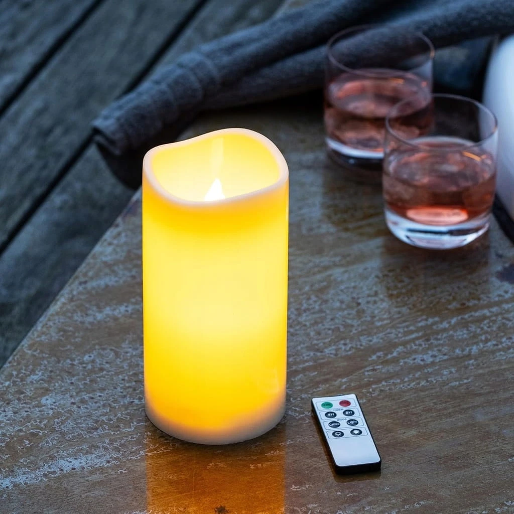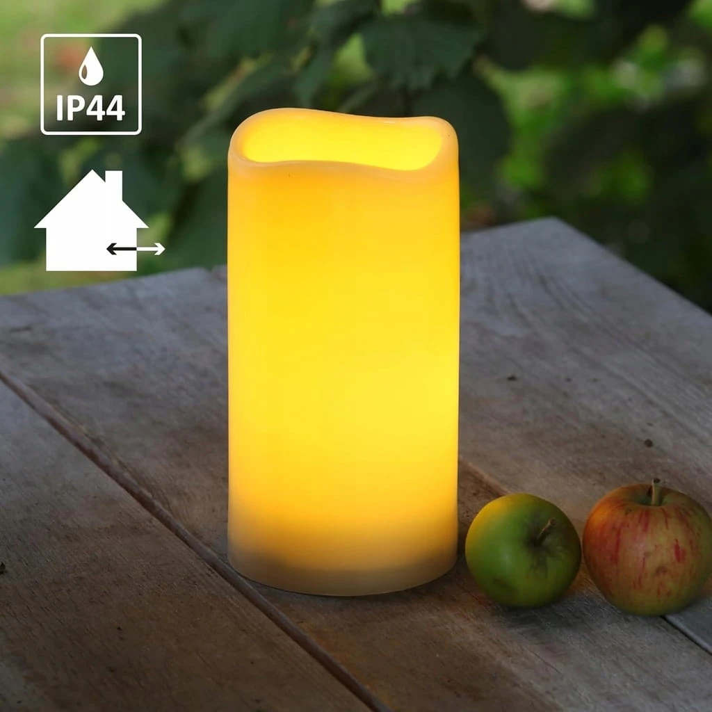 Świeca LED 20 cm – kremowa, z pilotem, zewnętrzna, efekt migotania, IP44