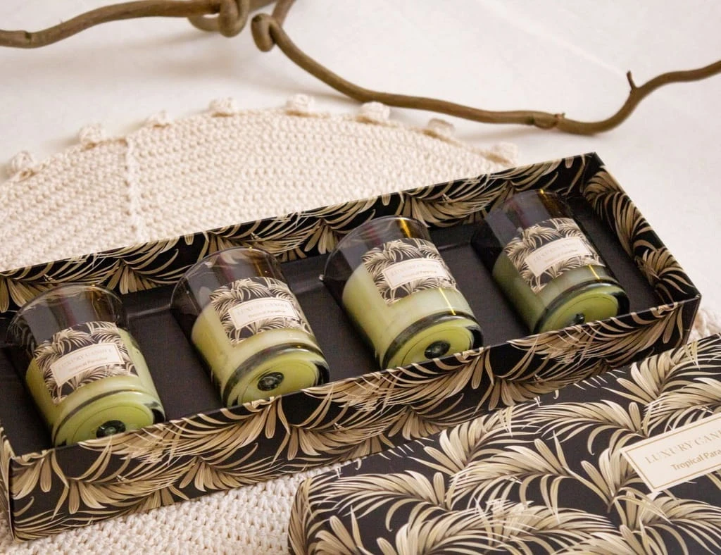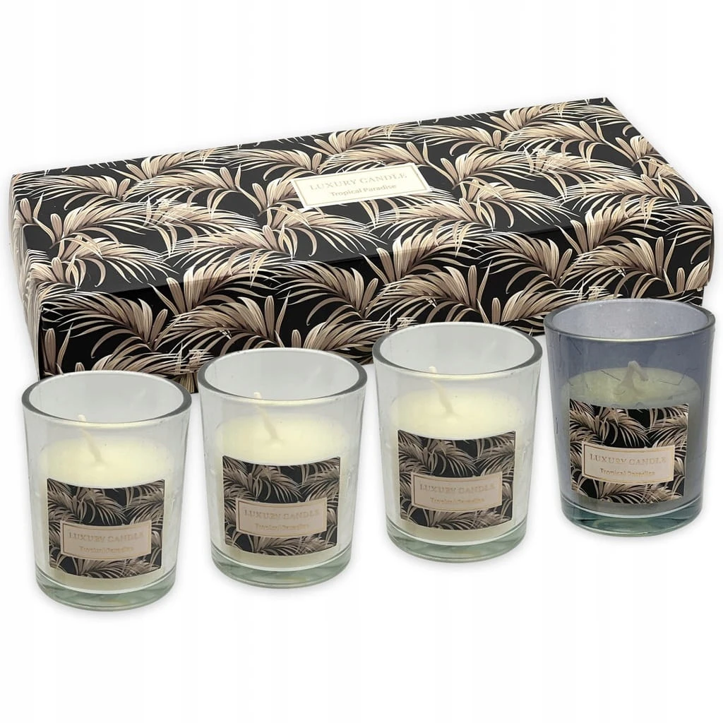 ✅ Naprawdę wykwintny, wyrafinowany i jednocześnie serdeczny prezent - zestaw świec w eleganckich kieliszkach LUXURY - TROPICAL PARADISE, zapakowany w stylowe pudełko! Wyobraźcie sobie - wieczór, łagodny taniec płomieni, delikatny aromat... Dajesz nie tylko świece, ale trochę domowej magii!