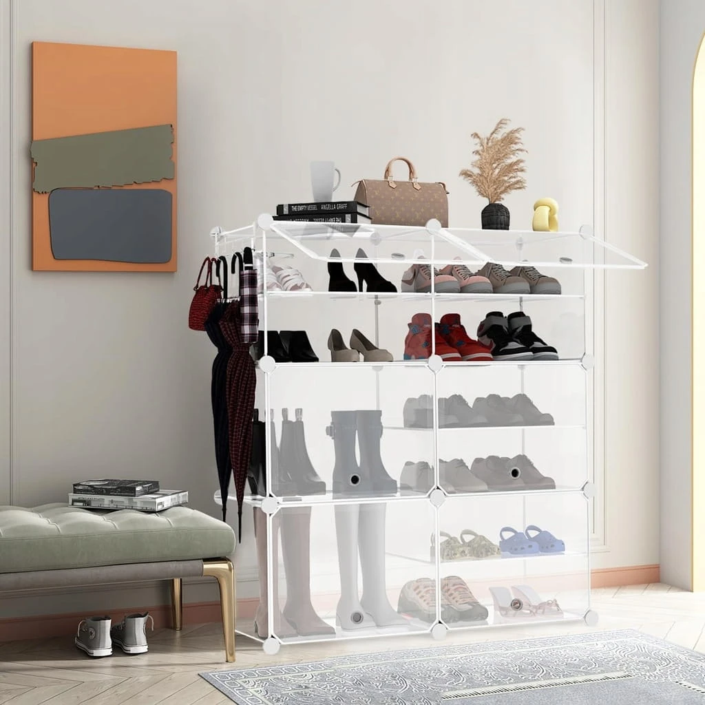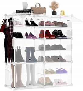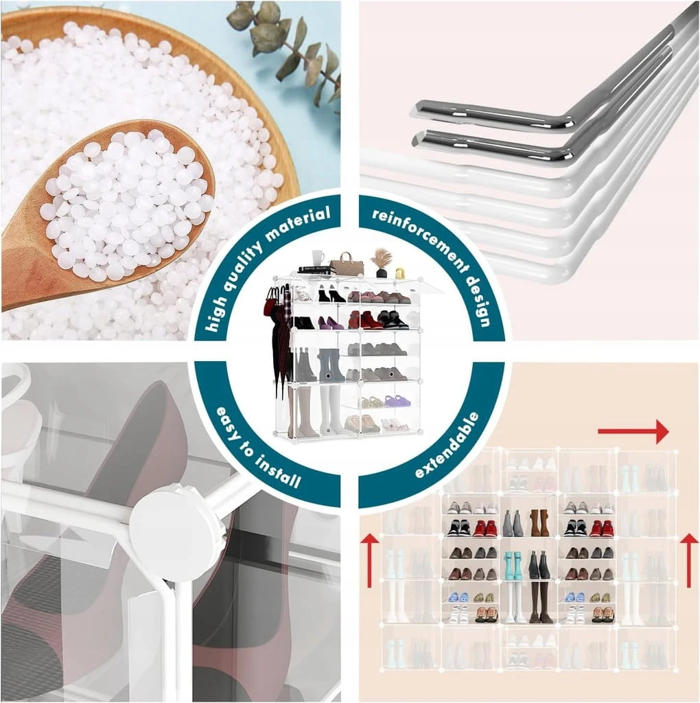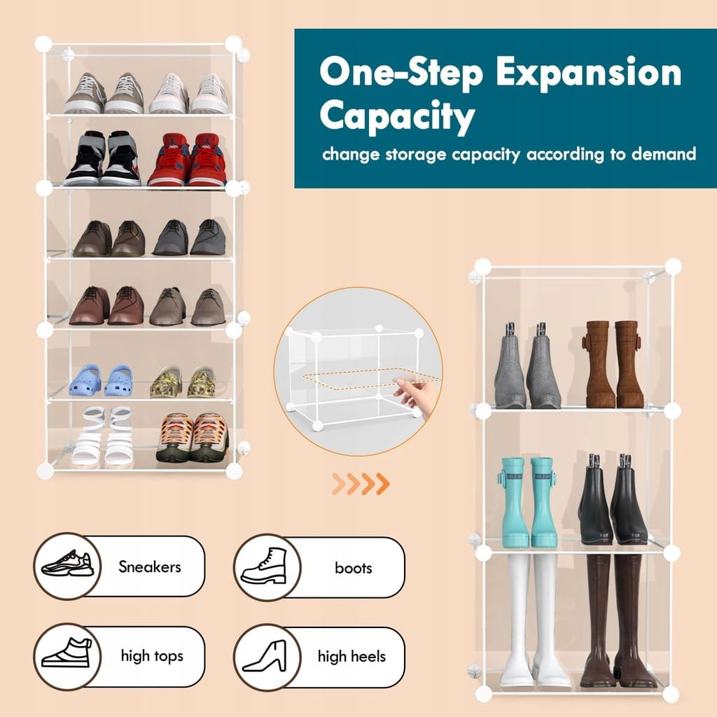 - ✅ Możliwość rozbudowy. Ten rozszerzalny stojak na buty jest idealny do przechowywania trampek, szpilek, butów itp. Komorę na środku każdej kostki można łatwo wyjąć i przekształcić w półkę na buty, która pomieści damskie buty. Może pomieścić do 24 par butów, co wystarczy, aby zaspokoić potrzeby Twoje i Twojej rodziny.