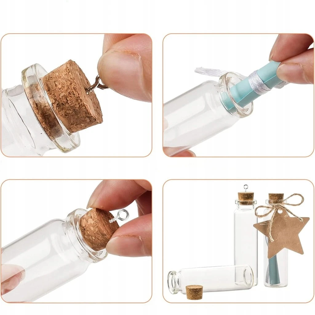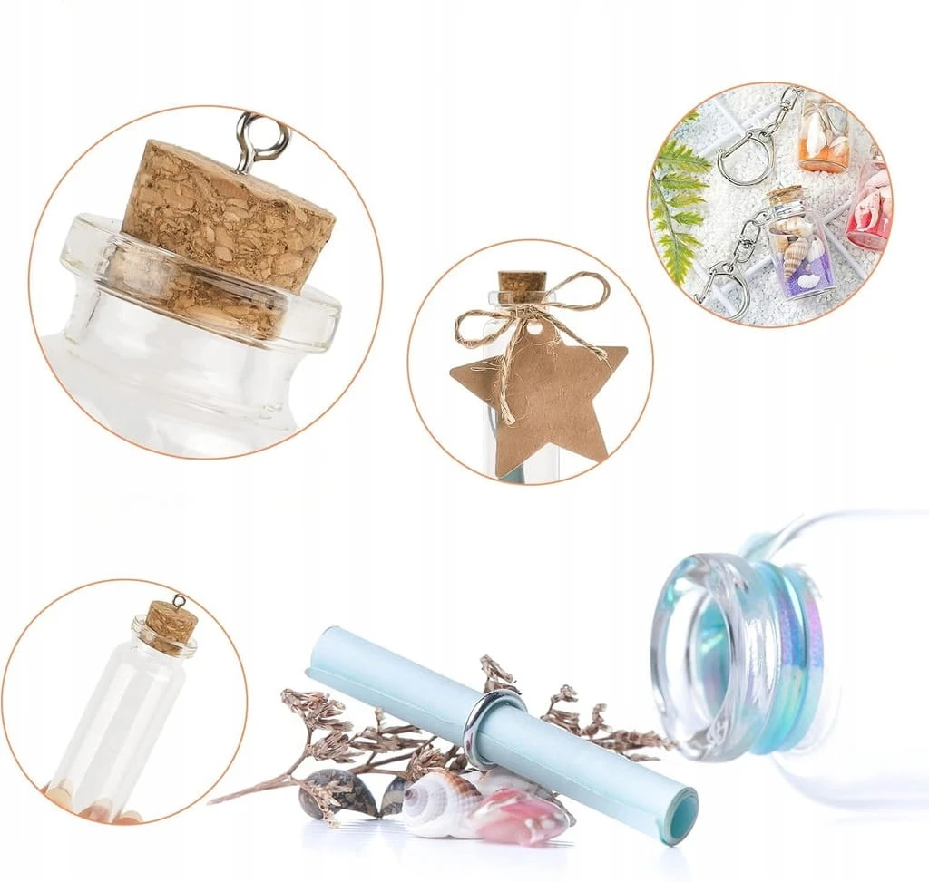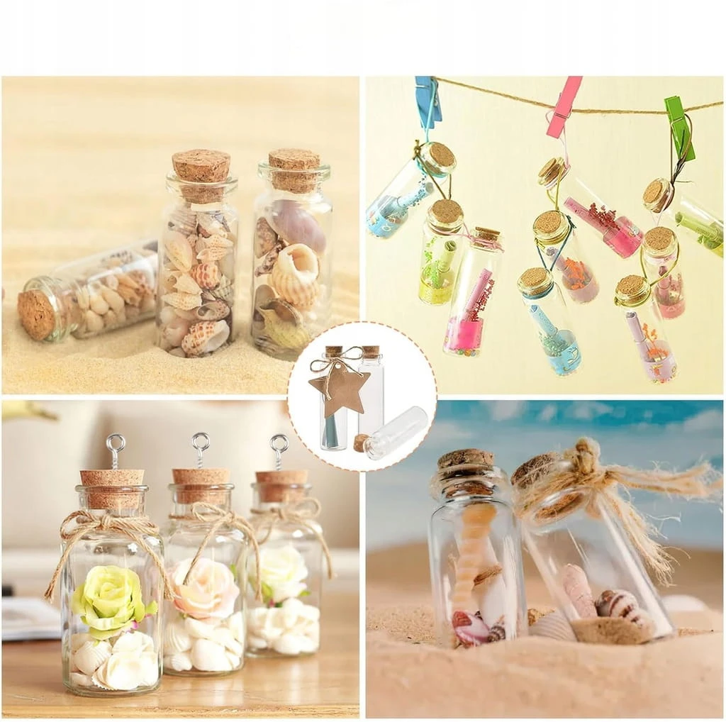 - ✅ Szerokie zastosowanie. Mini szklane butelki z korkiem mają szerokie zastosowanie. Po pierwsze, możesz umieścić ulubione przedmioty, takie jak dekoracyjne dzieła sztuki do domu, ogrodu, na imprezę i wesele; po drugie, możesz napisać życzenia błogosławieństwa na papierze, wypełnić je butelkami i wysłać jako prezenty dla przyjaciół, członków rodziny itd. Oczywiście można je również wykonać samodzielnie.