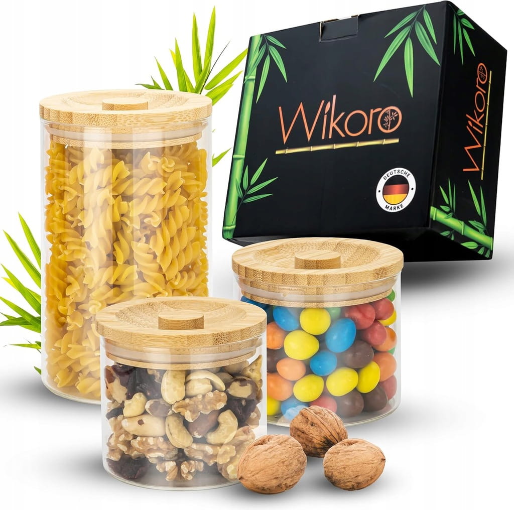 - ✅ Zrównoważony rozwój – nasze nowoczesne słoiki z pokrywkami z trwałego bambusa są wyjątkowo wysokiej jakości. Ponadto wszystkie nasze produkty Wikoro są oczywiście pakowane bez plastiku.