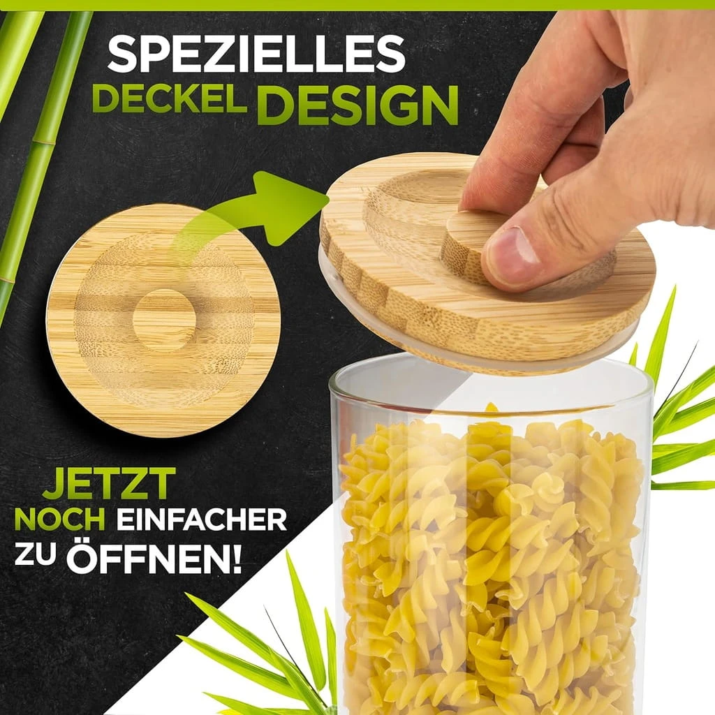- ✅ Przemyślane – przekonaj się teraz sam o łatwym do otwarcia słoiku Wikoro do przechowywania. Bambusowa pokrywka ma specjalną konstrukcję zapewniającą optymalną obsługę