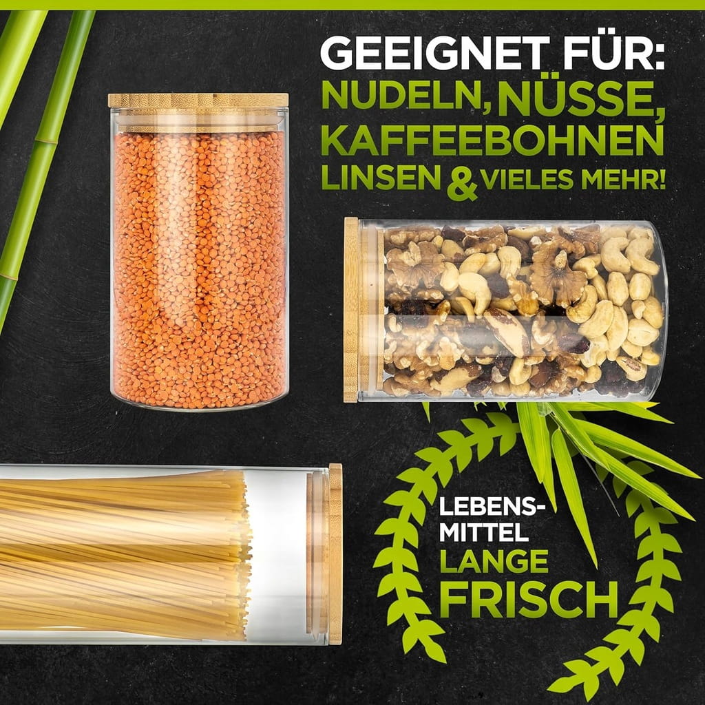 - ✅ Funkcjonalność – niezależnie od tego, czy chodzi o makaron, orzechy, musli czy ziarna kawy – w słoiczkach z pokrywką Twoje produkty spożywcze są idealnie schowane i dzięki temu zachowują świeżość przez wyjątkowo długi czas.