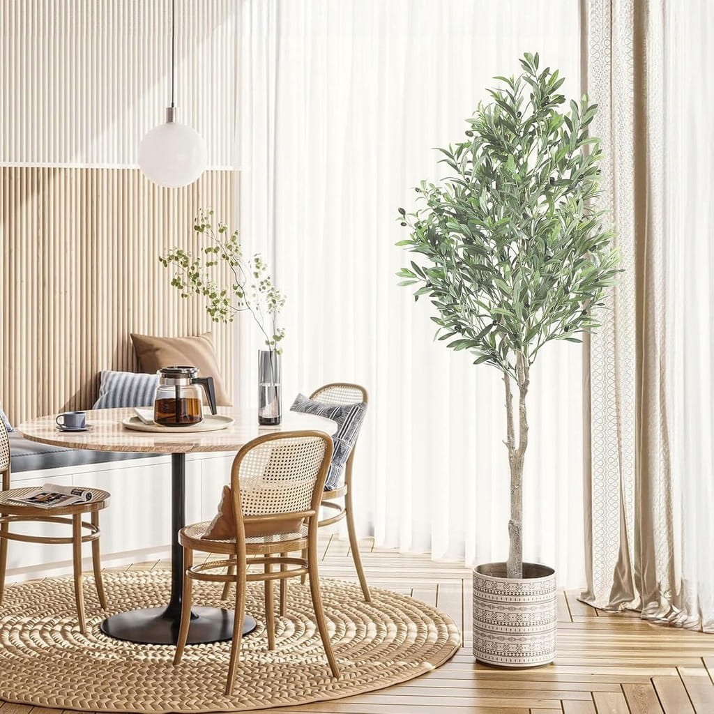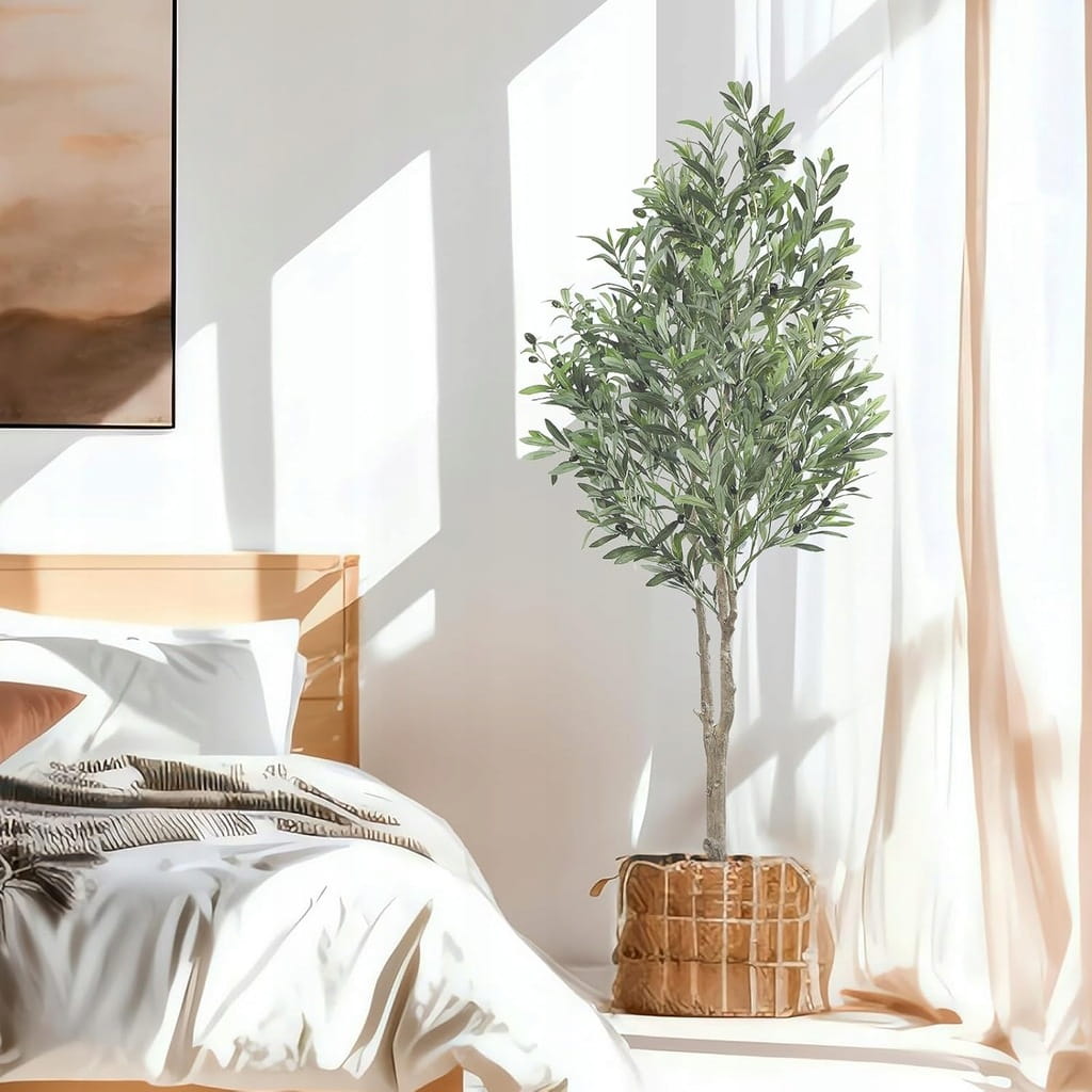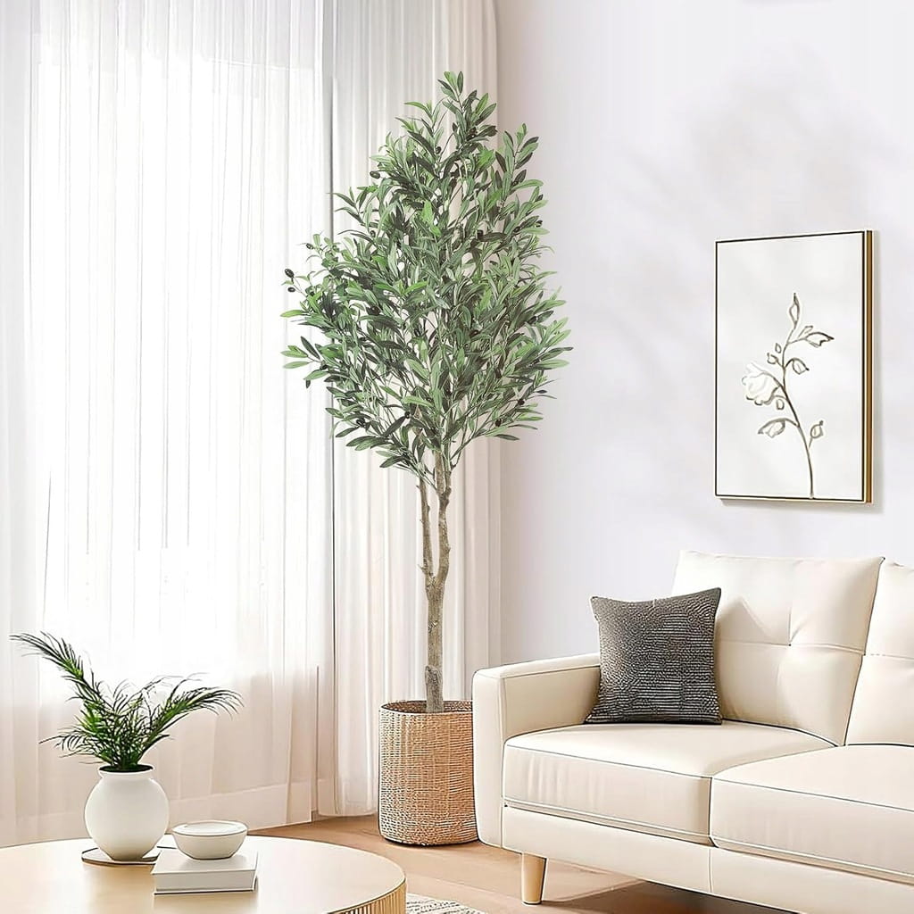 ☑️ Realistyczne drzewo oliwne - Sztuczne drzewo oliwne Oc'leaf składa się z pnia o strukturze kory oraz bujnych liści i owoców oliwnych. Każdy liść i owoc zostały starannie wykonane, dzięki czemu sztuczne drzewo oliwne wygląda jak dzieło sztuki. Aby uzyskać najlepszy efekt dekoracyjny, można umieścić drzewo w ozdobnej doniczce.