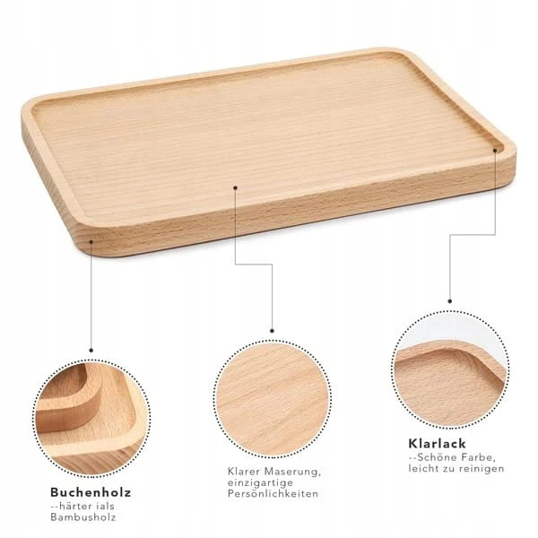 - Drewniane talerze do serwowania wykonane są z naturalnego litego drewna bukowego. Solidny i lekki, niełatwo się łamie. Są kompaktowe, piękne i mają czysty wygląd, pasują do wszystkich elementów z drewna bukowego!