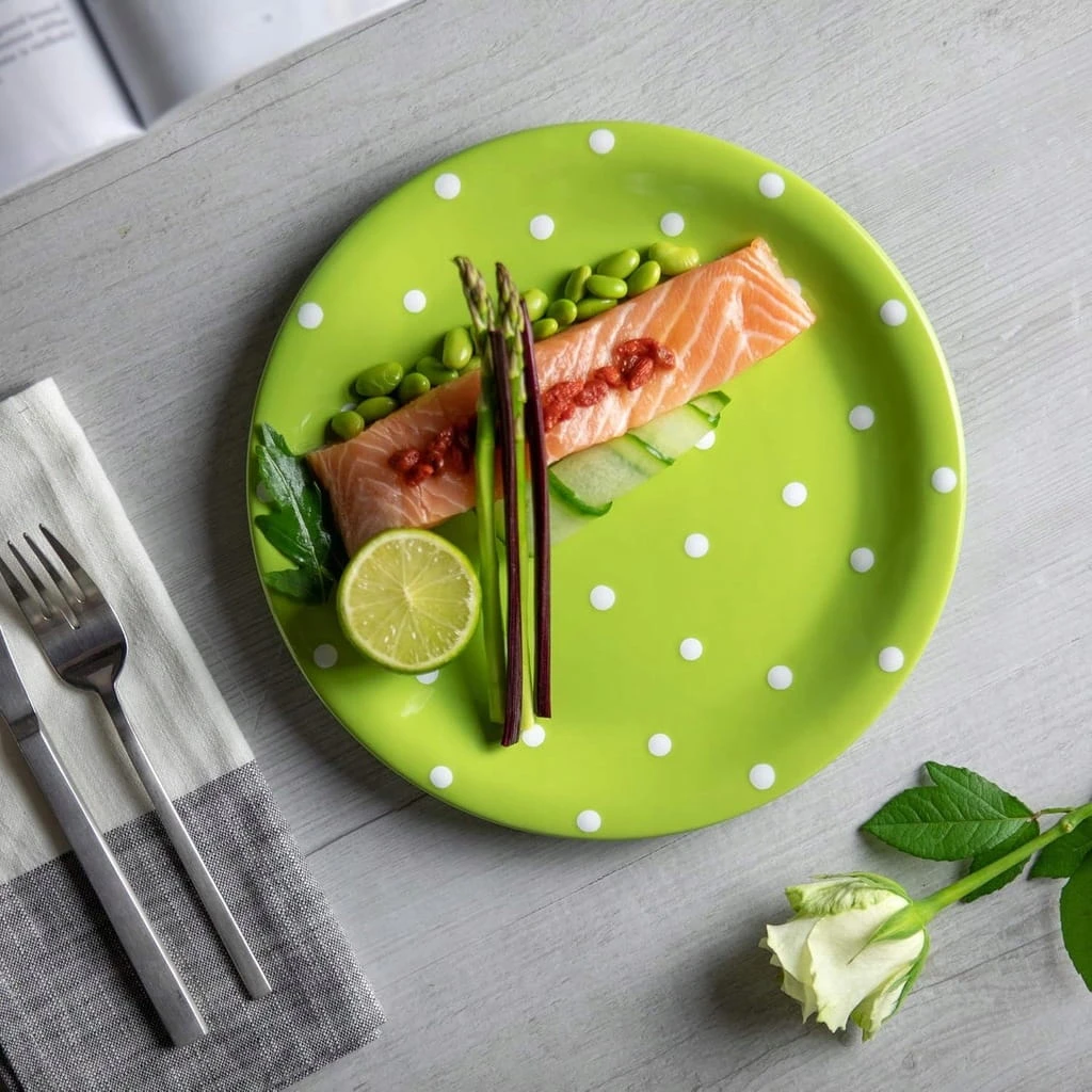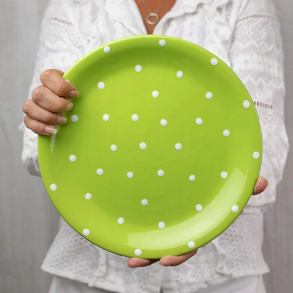 Talerz obiadowy ceramiczny – ręcznie malowany City to Cottage, limonkowy