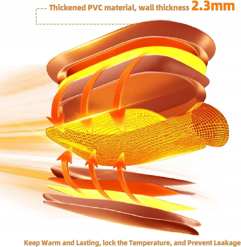 - ✅ Wysokiej jakości materiał. Butelka na gorącą wodę wykonana jest z naturalnej wysokiej jakości gumy, która jest nietoksyczna, nieszkodliwa. Odporność na wybuchy, odporność na ciepło, odporność na starzenie się kauczuku naturalnego jest znacznie lepsza niż PVC.