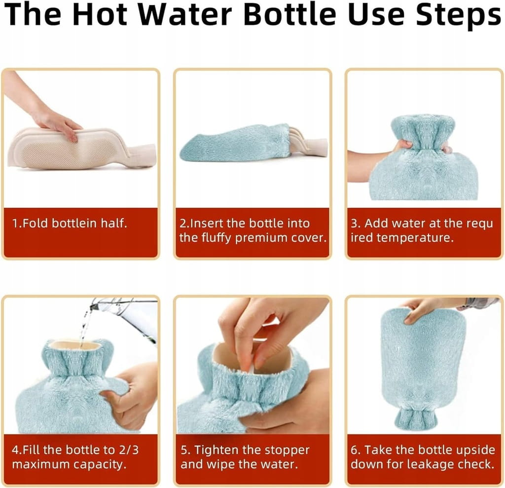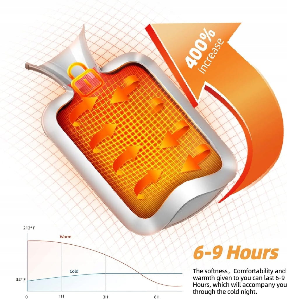 - ✅ Łatwa obsługa: Butelka z gorącą wodą o szerokim otworze zapobiega poparzeniu podczas nalewania wody. Jest to bardzo wygodne, szybkie i bezpieczne wlewanie wody do worka z gorącą wodą bez przelewania. Wlać dwie trzecie gorącej wody w temperaturze 80 stopni. Uwaga: Nie używać kuchenki mikrofalowej do podgrzewania.