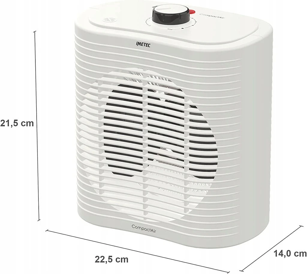 Do nauki lub pracy, do postawienia bezpośrednio na biurku lub do szybkiego ogrzania małych pomieszczeń: Imetec Compact Air to niewielkich rozmiarów termowentylator, który można łatwo przenosić dzięki jego kompaktowej konstrukcji. Bez trudu przeniesiesz go z jednego pomieszczenia do drugiego, ponieważ jest lekki i wyposażony w praktyczny uchwyt, a po zakończeniu użytkowania nie będziesz miał problemów z jego wygodnym przechowywaniem.