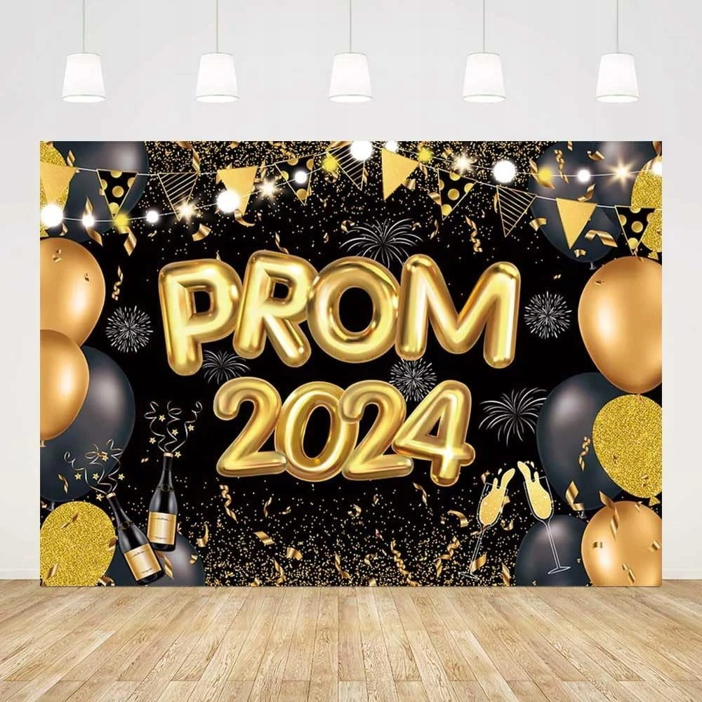 Tło fotograficzne 210 x 150 cm – czarno-złote balony, ścianka foto