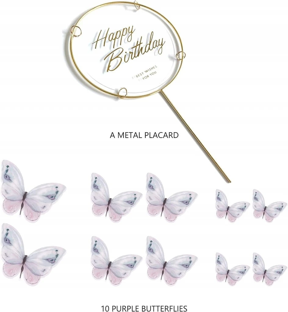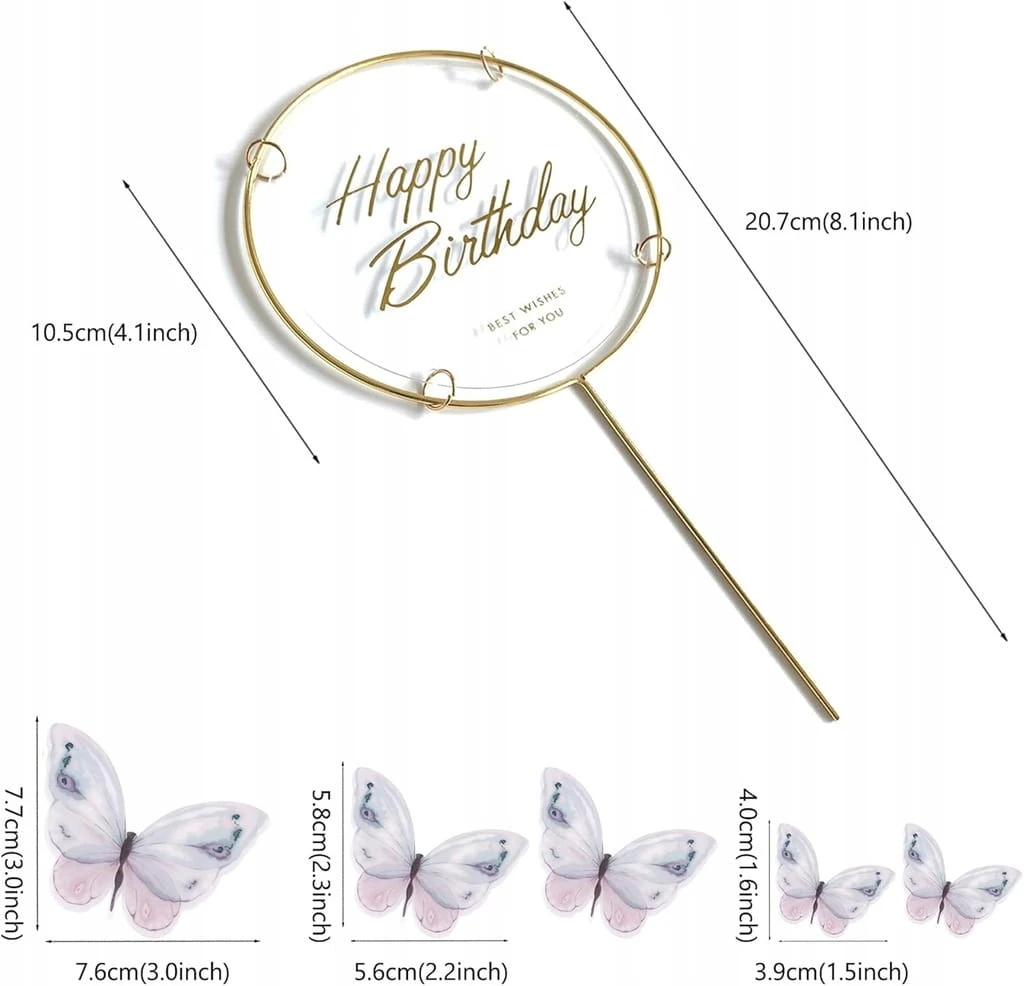 - ✅ Opakowanie zawiera: 1 x panel akrylowy ze złotą metalową ramką toppery na tort z okazji urodzin i 10 sztuk topperów do tortu motylkowego
