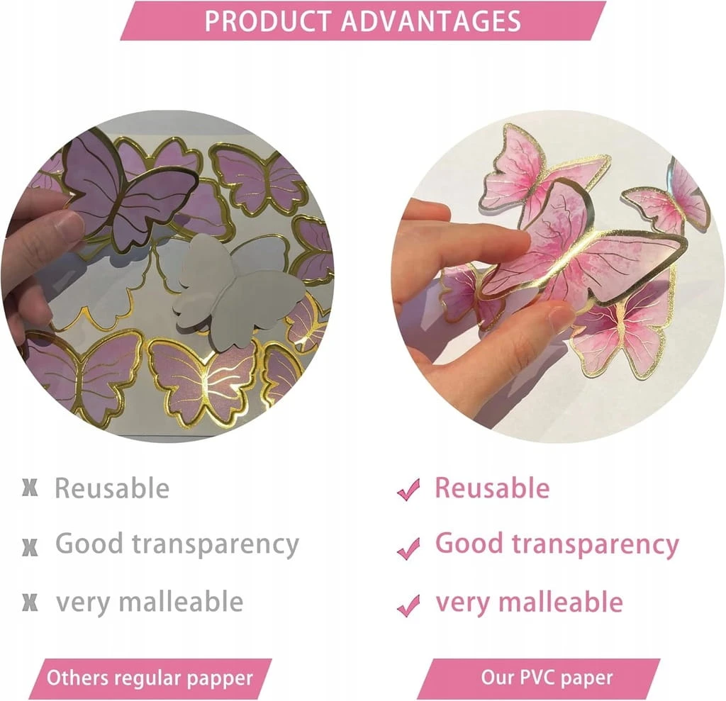 - ✅ Materiał: toppery na tort z okazji urodzin wykorzystują metalową ramkę i panele akrylowe, nakładki na ciasto motylkowe są wykonane z PCW, mocne i trwałe do nałożenia; bezpieczne i nietoksyczne do dekoracji żywności. Materiał PVC nie odkształca się łatwo i nie pęka, a także nadaje się do wielokrotnego użytku po umyciu