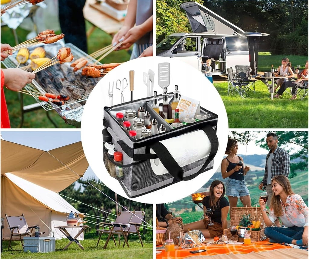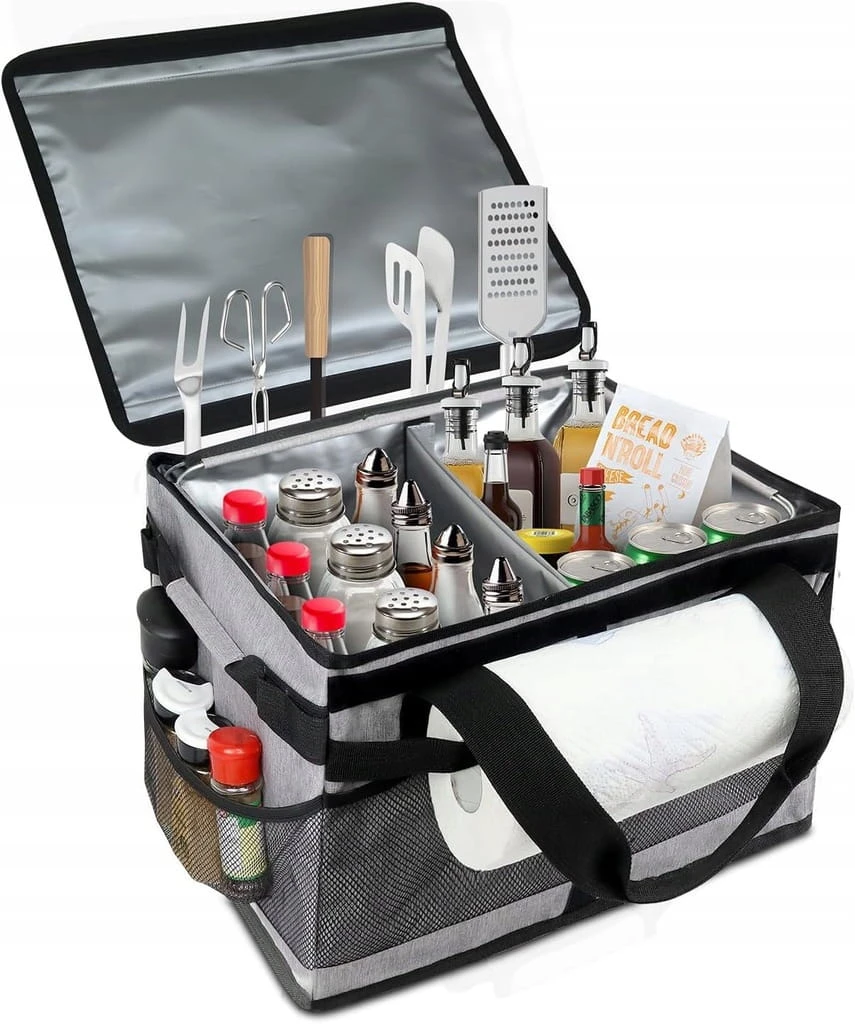 - ✅ Wielofunkcyjna konstrukcja: Riuog torba to wielofunkcyjna konstrukcja do przechowywania z 2 przestronnymi przegródkami głównymi, 1 praktycznym uchwytem na ręczniki papierowe i 6 siatkowymi workami do przechowywania różnych elementów. Idealnie nadaje się do przenoszenia narzędzi do grilla, narzędzi kempingowych i przyborów piknikowych, jest świetnym organizerem samochodowym.
