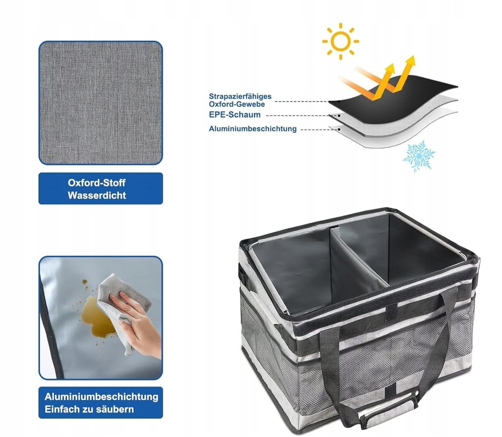 - ✅ Wytrzymały i trwały: wyprodukowany z wodoodpornej tkaniny Oxford z aluminiową powłoką wewnątrz. Łatwy do czyszczenia, dzięki stabilnej ramie ze stali nierdzewnej i zdejmowanej, grubej płycie dna kosz ma stabilność i wysoką nośność, co czyni go wspaniałym prezentem dla ojców i mężów, miłośników samochodowych i nie tylko.
