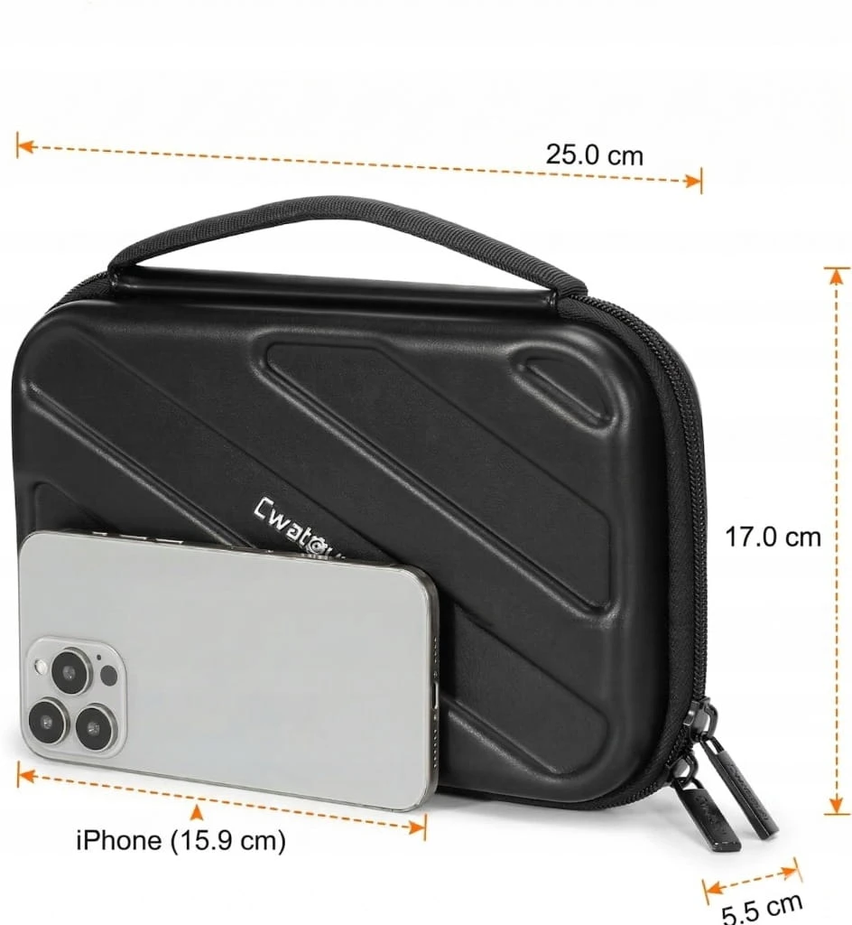 ✅ Duża pojemność: walizka podróżna z twardą obudową do przechowywania małych akcesoriów do aparatu, takich jak filtr obiektywu, karta SD, dysk flash USB, kabel, powerbank, słuchawki, adapter sieciowy itp. Rozmiar elektronicznej torby podróżnej to 25 cm dł. x 16 cm szer. x wys. 6,5 cm.