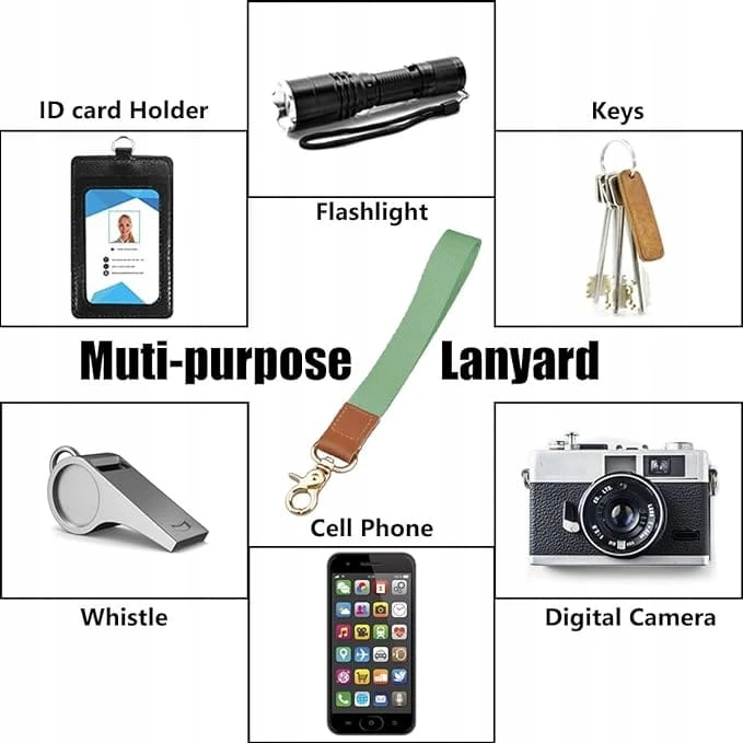 Dzięki wysokiej jakości, bezpiecznie obrotowemu metalowemu zapięciu możesz łatwo przechowywać w pobliżu swój breloczek do kluczy / dowód osobisty / aparat / telefon komórkowy / charmsy / USB / przedmioty elektroniczne / iPod/USB lub inne lekkie przedmioty. Krótka smycz na klucze jest wystarczająco mocna, może być używana przez długi czas.