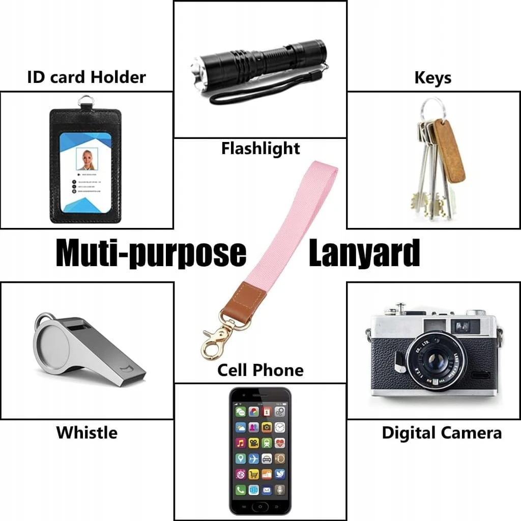 Dzięki wysokiej jakości, bezpiecznie obrotowemu metalowemu zapięciu możesz łatwo przechowywać w pobliżu swój breloczek do kluczy / dowód osobisty / aparat / telefon komórkowy / charmsy / USB / przedmioty elektroniczne / iPod/USB lub inne lekkie przedmioty. Krótka smycz na klucze jest wystarczająco mocna, może być używana przez długi czas.