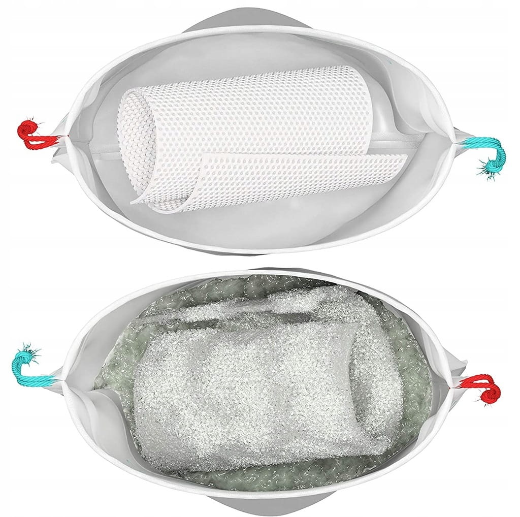 Każda torba jest pokryta odporną na przeciekanie powłoką, aby zapewnić bezproblemowe użytkowanie. Aby zamknąć - zaciągnij mocno sznurki i zawiąż węzeł.