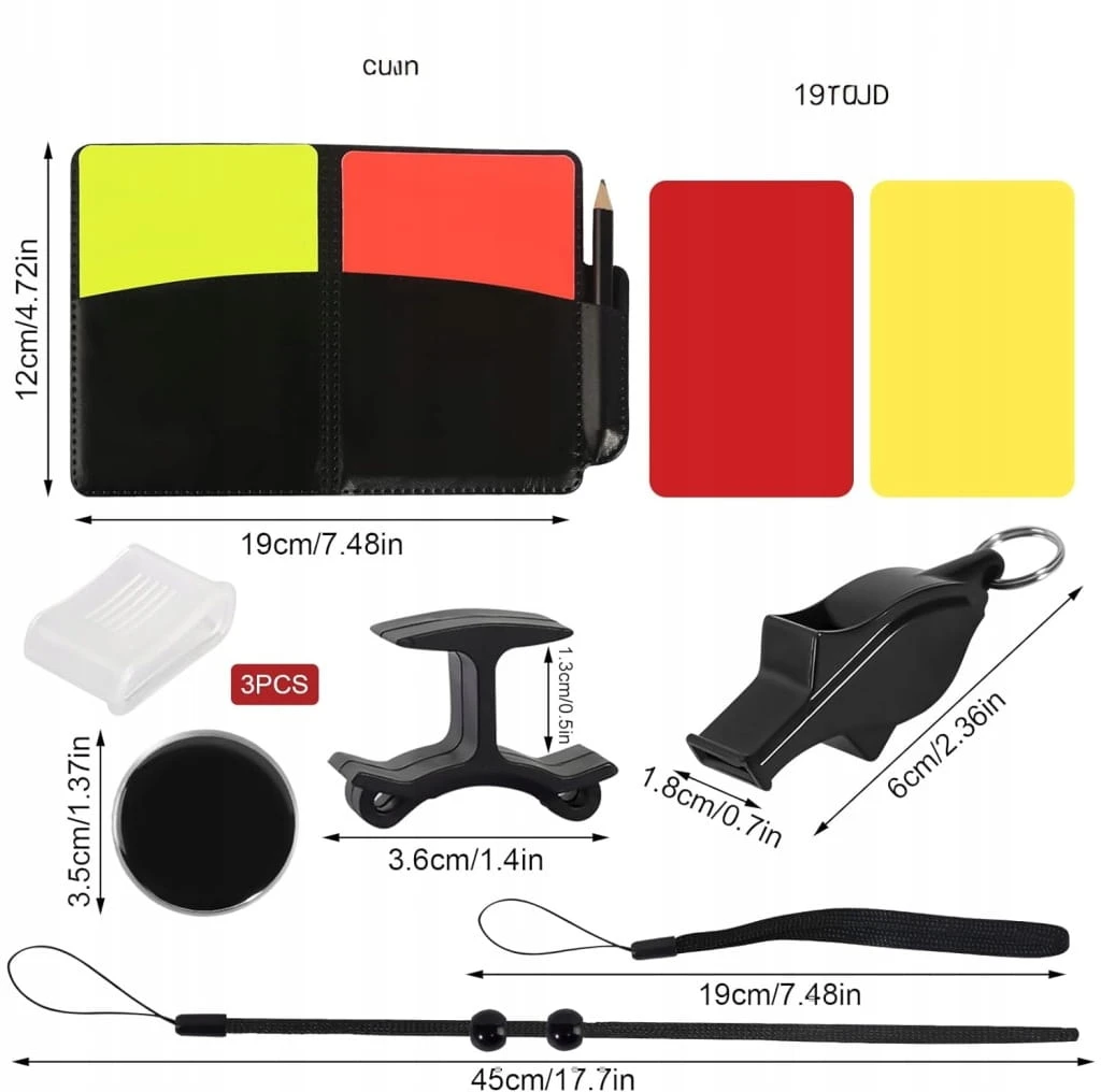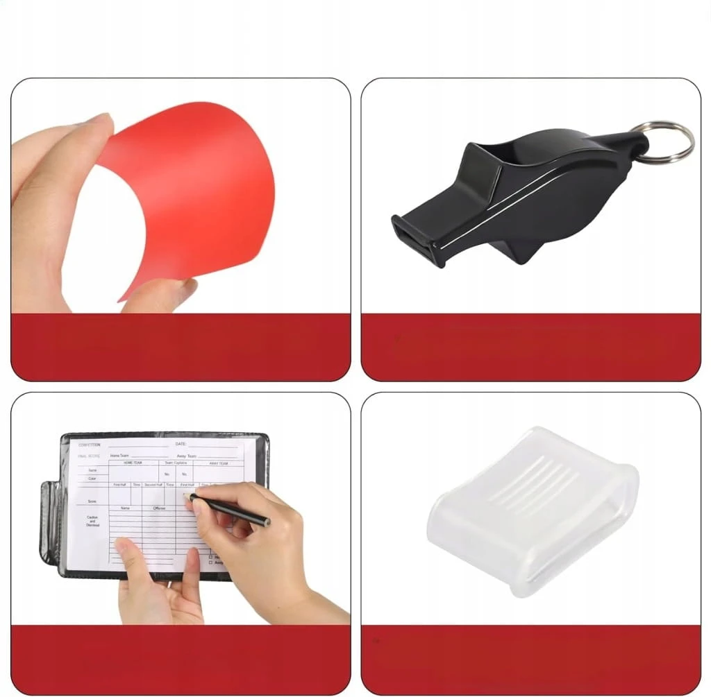Zestaw sędziów, karty sędziego, gwizdek sędziowski, czerwony, żółty, karta sędziowska, kieszonka, punktacja, znacznik do gry w piłkę nożną, sport szkolny, sport