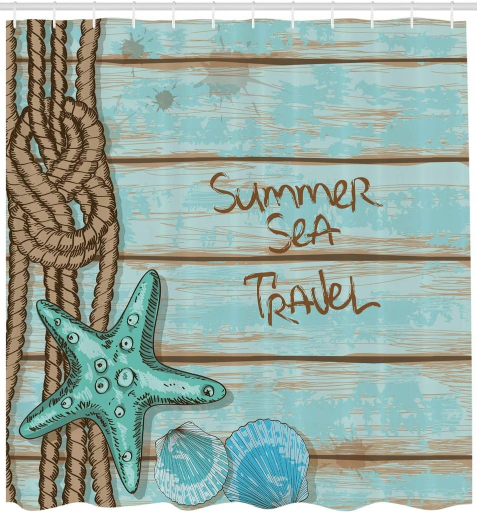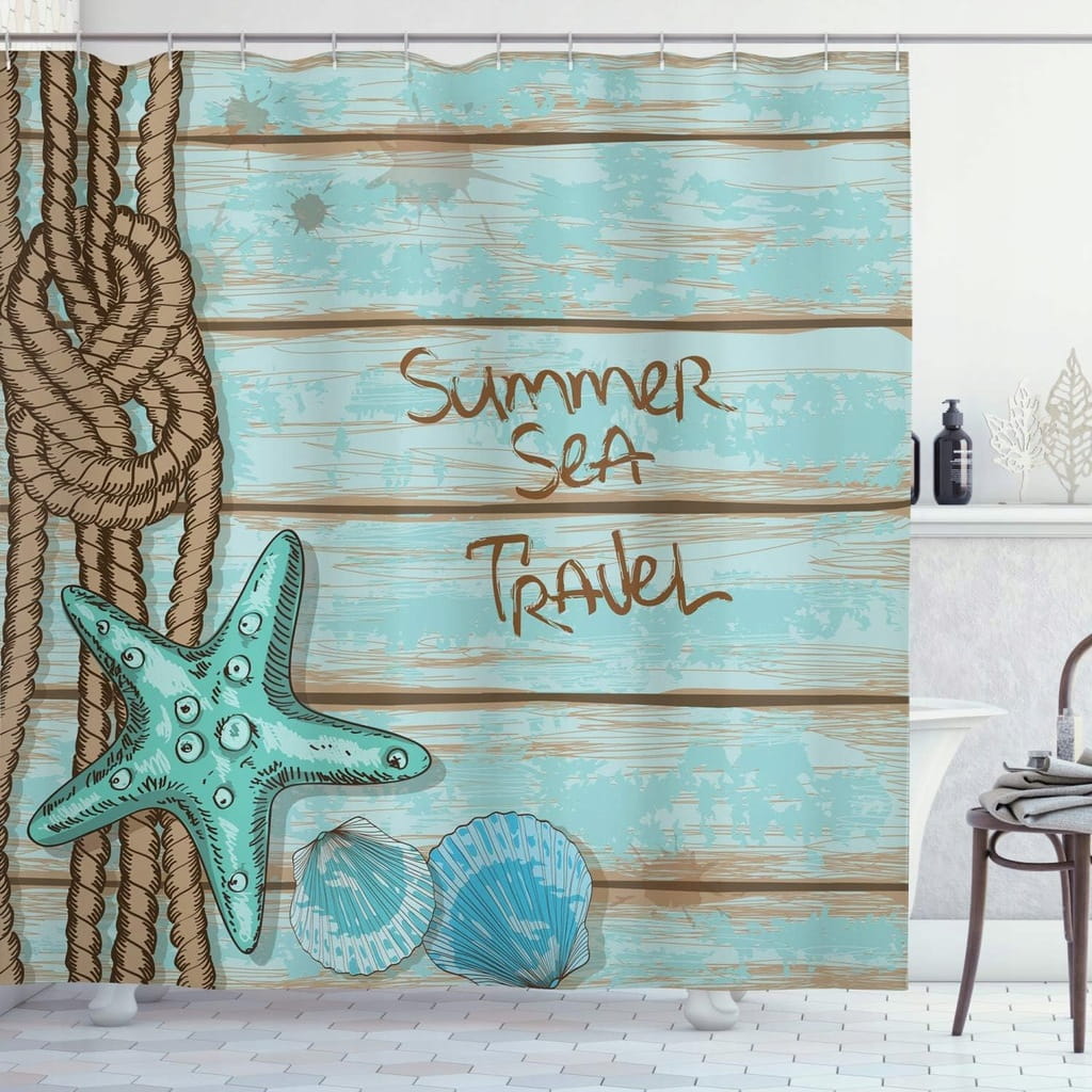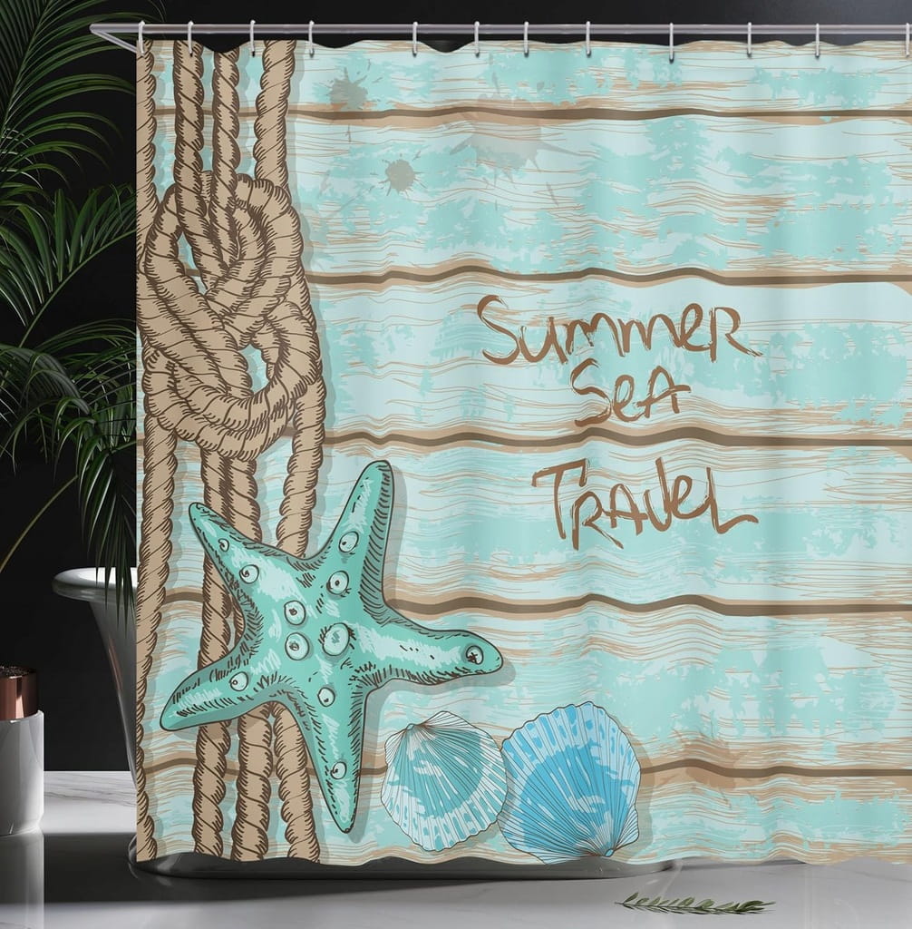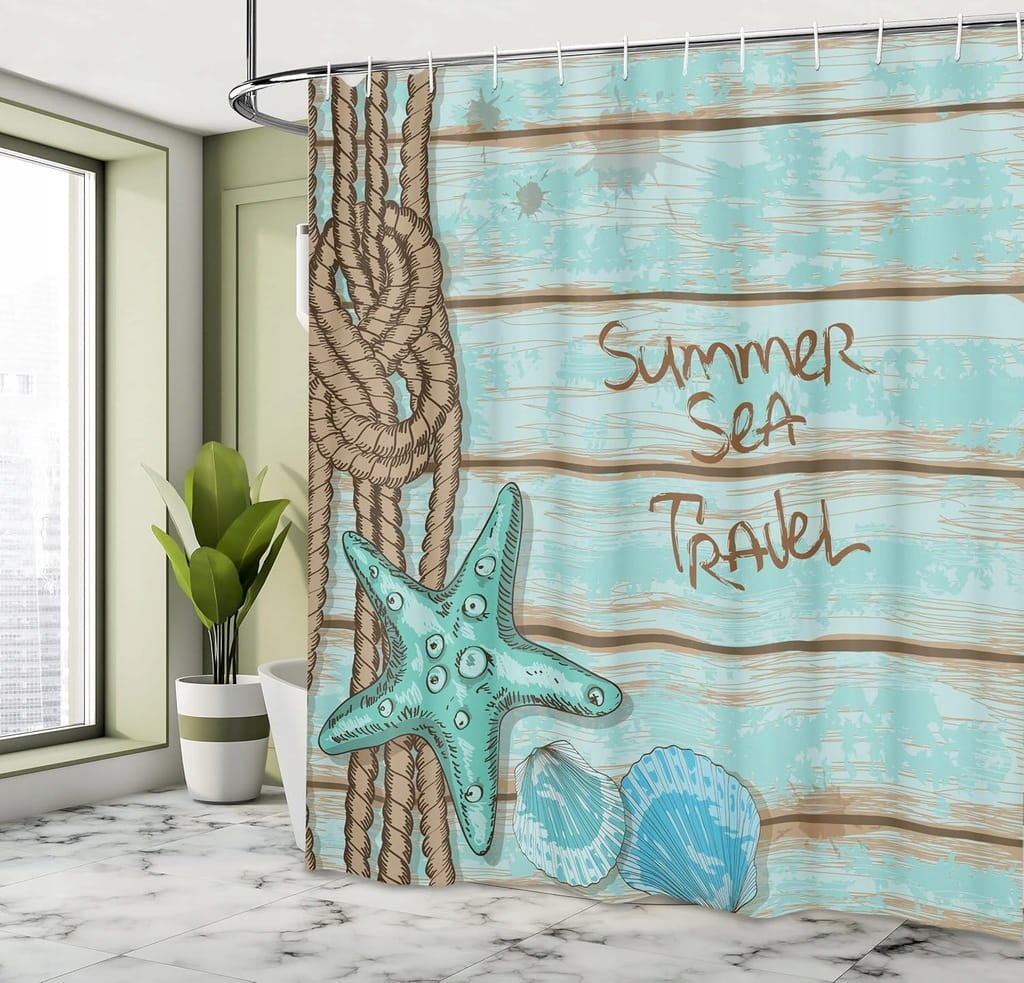 Zasłona prysznicowa 175 x 240 cm z haczykami – wakacje i muszelki