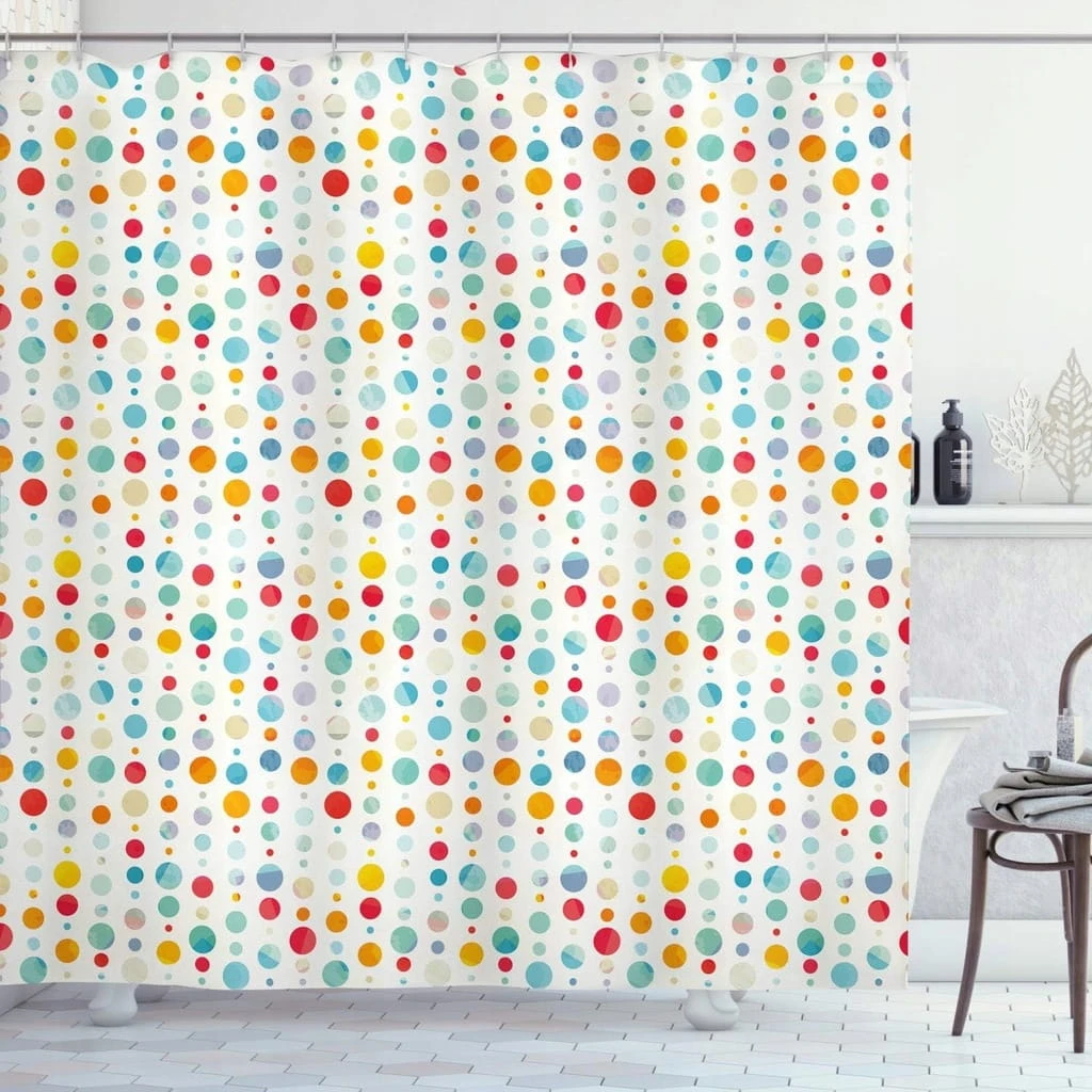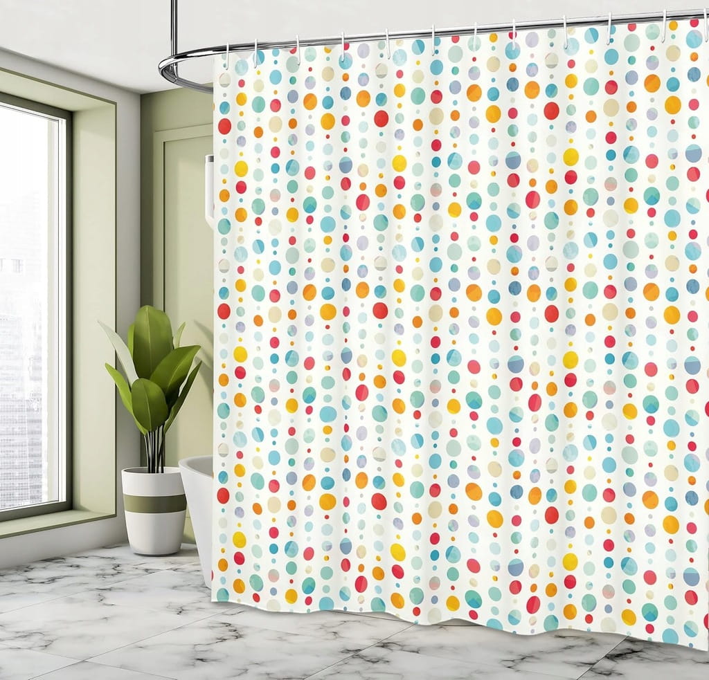 Zasłona prysznicowa 175 x 240 cm z haczykami – wzór w kropki