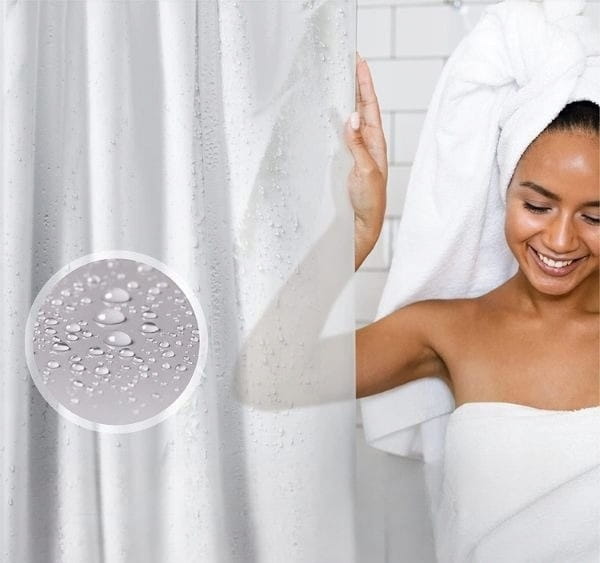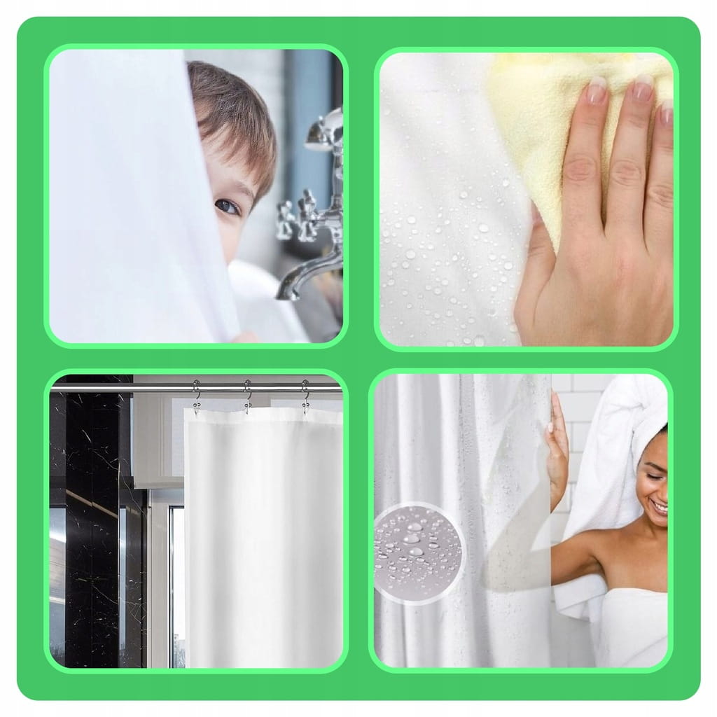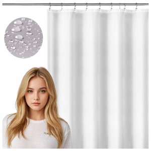 LIBA – biała zasłona prysznicowa 183 × 213 cm to połączenie funkcjonalności, stylu i trwałości. Wykonana z wysokiej jakości tkaniny poliestrowej, jest odporna na wilgoć, pleśń i zagniecenia. Jej specjalna powłoka PE nadaje powierzchni właściwości hydrofobowe, dzięki czemu krople wody nie wnikają w materiał, a po prostu spływają, pozostawiając łazienkę suchą i czystą.