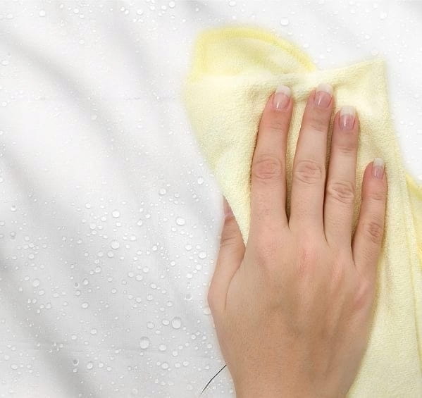 Materiał nie tylko świetnie chroni przed zachlapaniem, ale również jest łatwy w pielęgnacji – wystarczy przepłukać i przetrzeć po użyciu, aby zachował czystość i świeży wygląd przez długi czas. Zasłonę można także prać, co czyni ją wyjątkowo praktycznym rozwiązaniem.