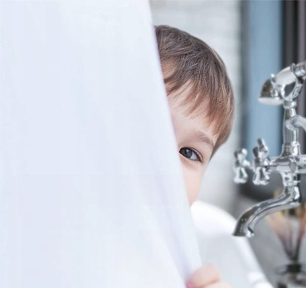 Zasłona LIBA o wymiarach 183 × 213 cm pasuje do większości pryszniców i wanien o standardowych rozmiarach, zarówno z prostym, jak i zakrzywionym drążkiem. Trzy magnesy na dolnej krawędzi skutecznie utrzymują ją na miejscu, zapobiegając przywieraniu do ciała podczas kąpieli.