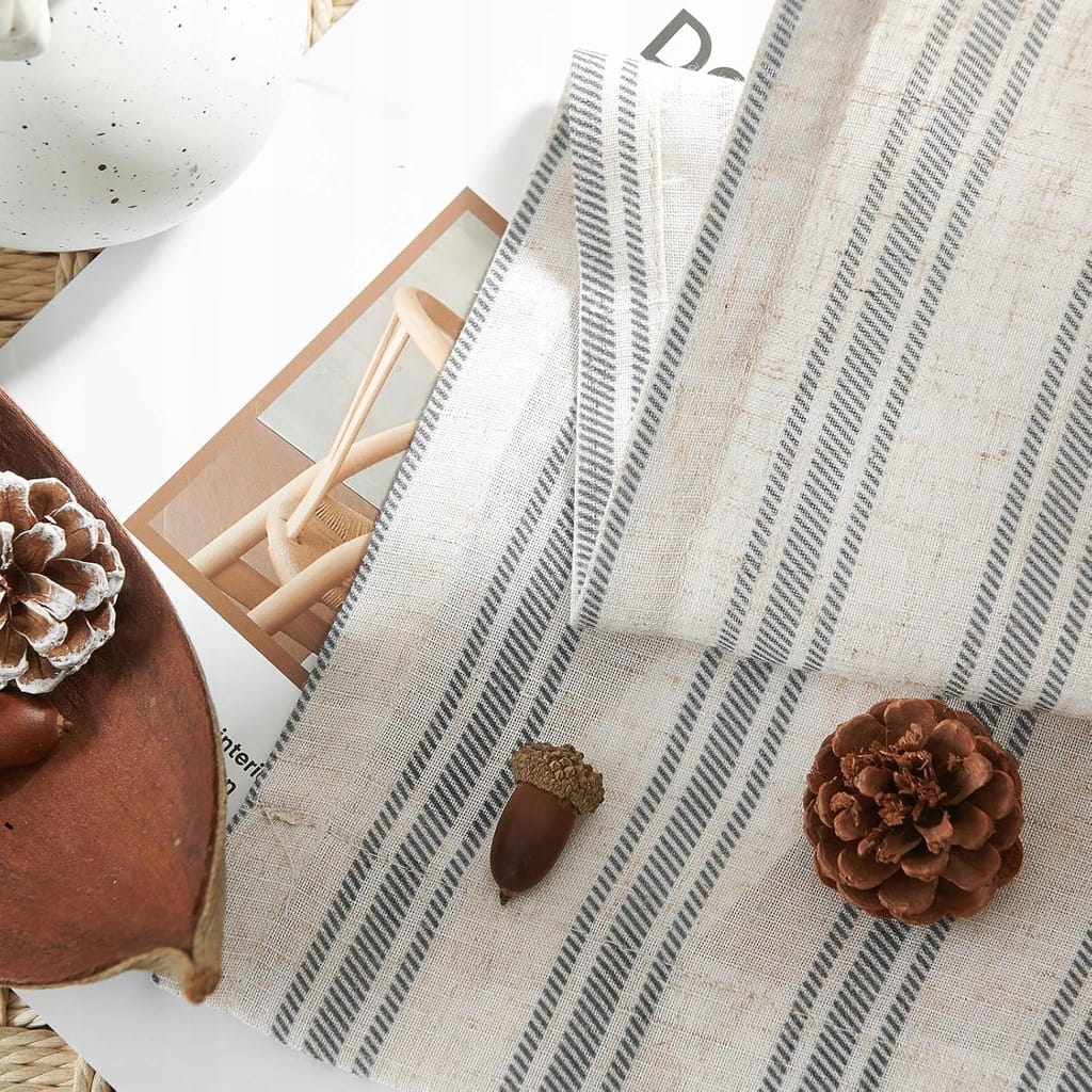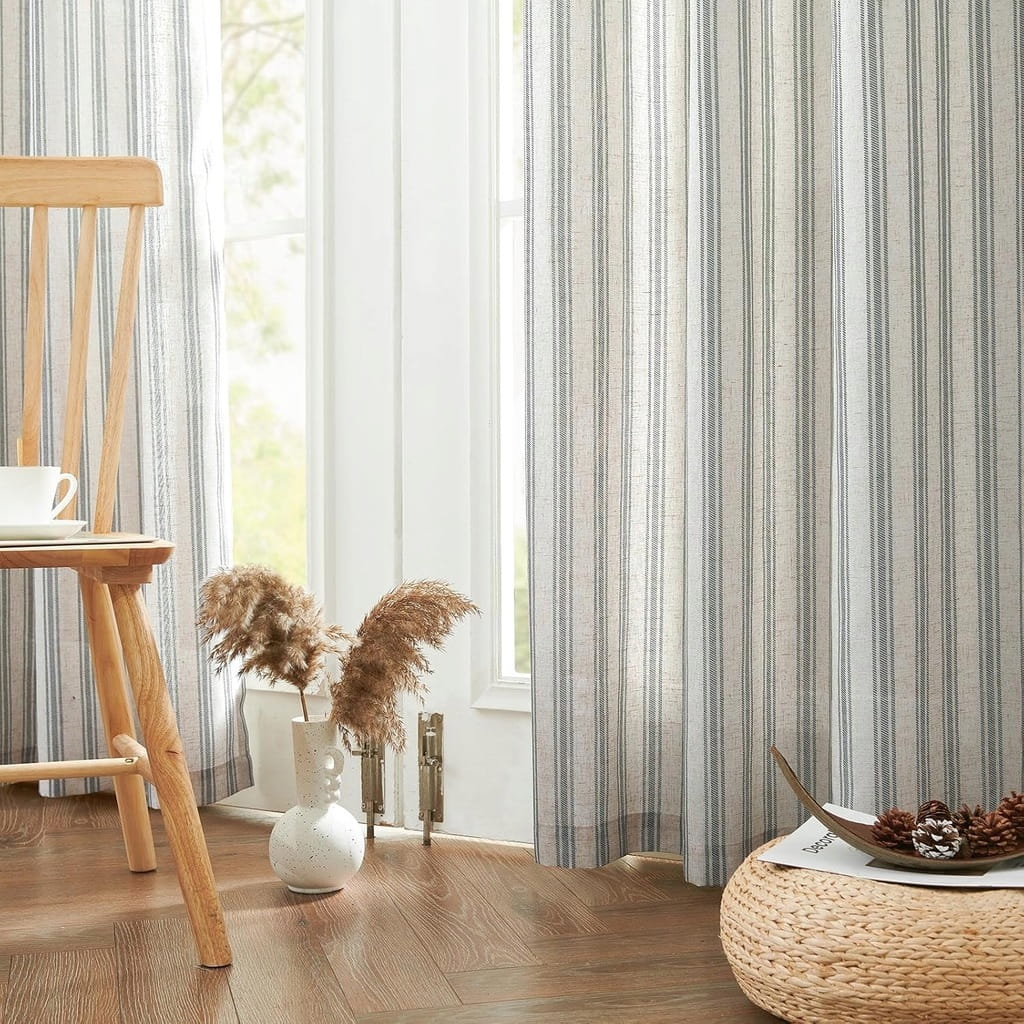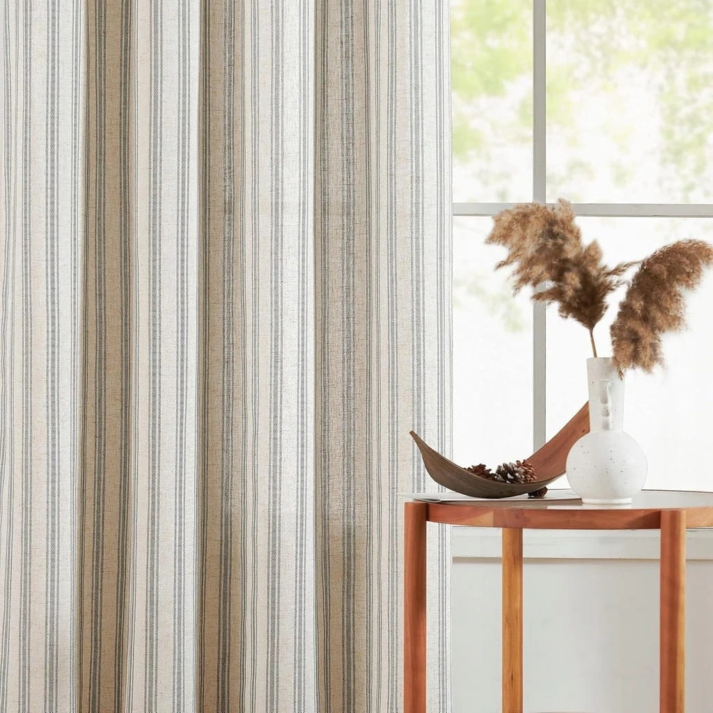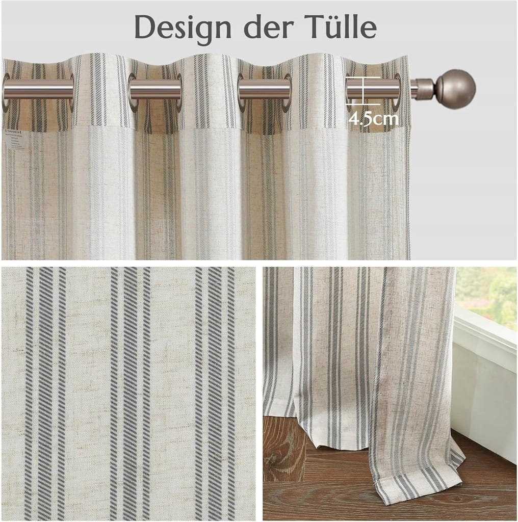 - ☑️ Styl nadruku: wzór z nadrukiem w paski z jednej strony z optycznie czystymi liniami nadaje zasłonie nowoczesny akcent rustykalnego lnu.