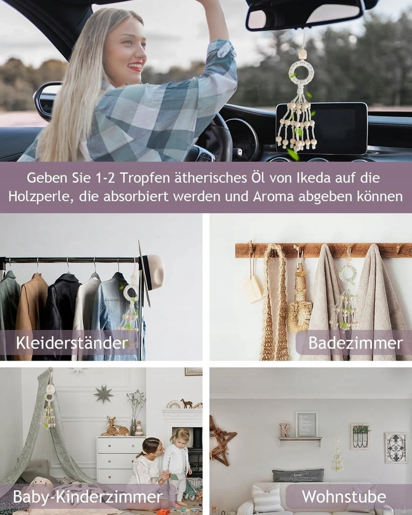 - ✅ Idealny pomysł na prezent: odświeżacz powietrza do samochodu marki Ikeda to najlepszy i odpowiedni nośnik olejków eterycznych. Ręcznie wykonany dyfuzor olejków z drewna działa odświeżająco i pomaga podczas snu. Nie musisz przepakowywać, otrzymasz nasz najlepszy odświeżacz powietrza do samochodu w pudełku prezentowym. Jest to zdecydowanie obowiązkowy prezent dla siebie lub jako delikatny prezent dla partnera, rodziny, przyjaciół