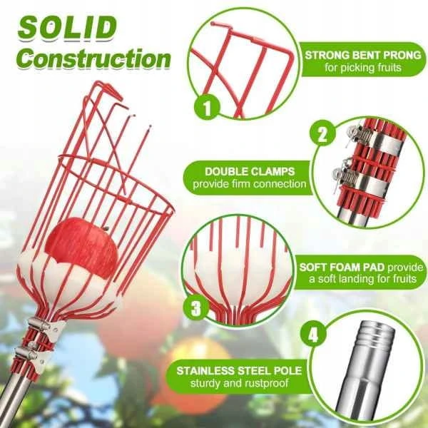 - ✅ Szerokie zastosowanie: Jesień to sezon zbiorów, ten zbieracz owoców jest bardzo odpowiedni do zbierania owoców, które są trudno dostępne w wysokich miejscach, takich jak pomarańcze, jabłka, gruszki, daktyle, grejpfruty, cytryny, morele, brzoskwinie itp.