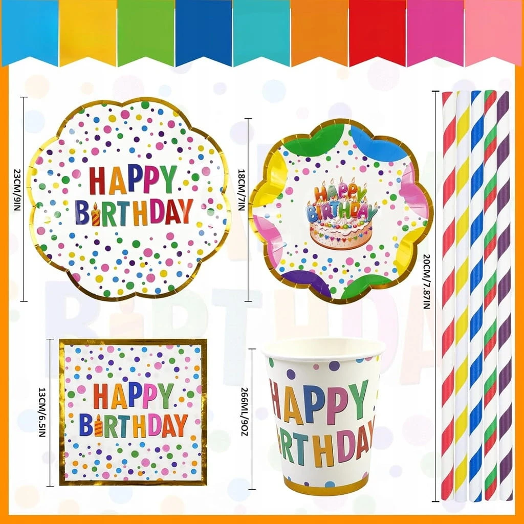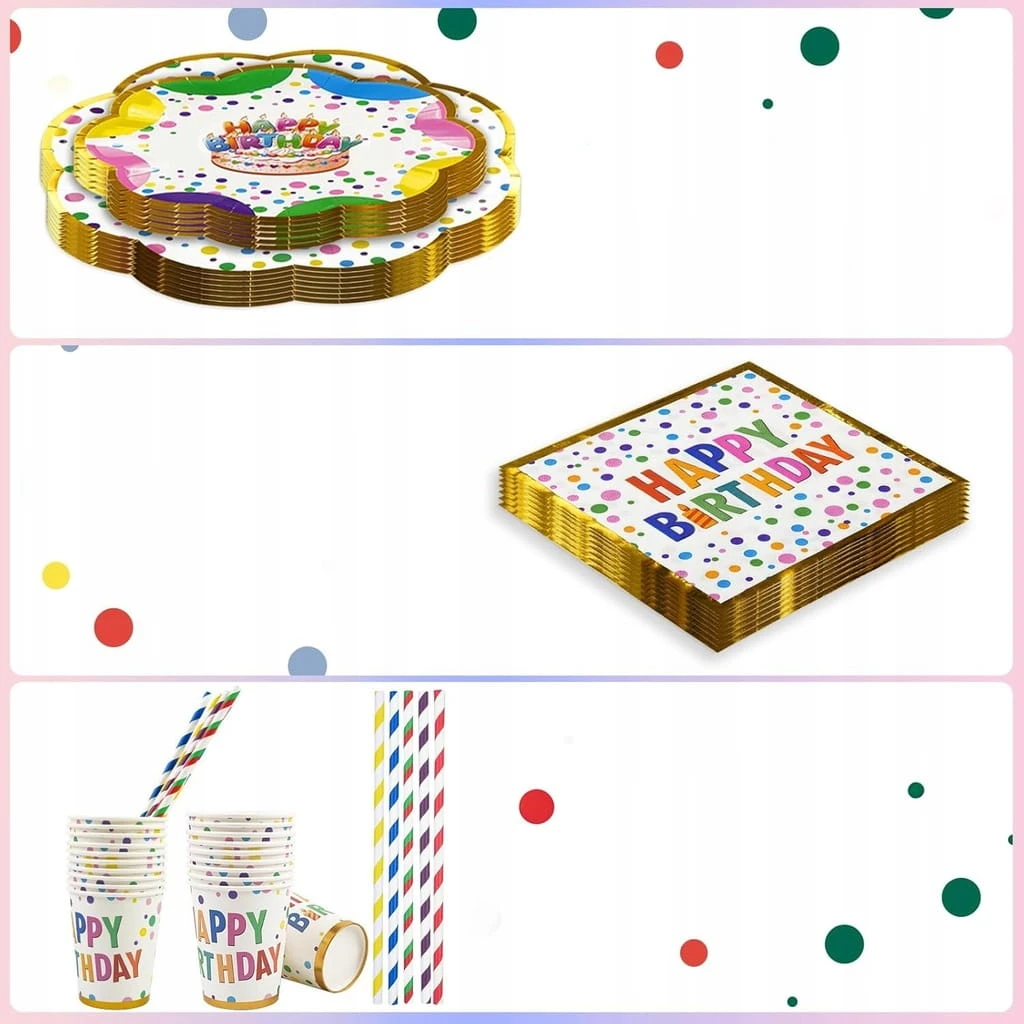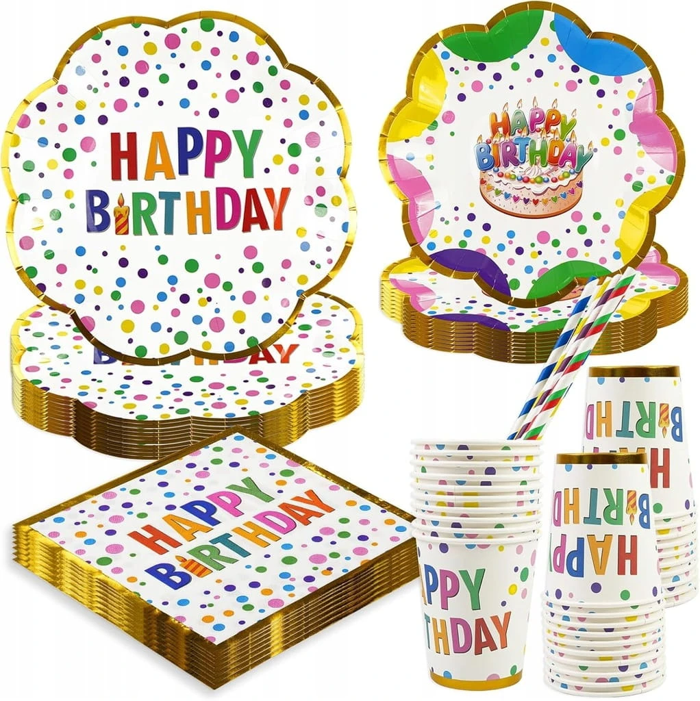 Zestaw Urodzinowy 50 el. dla 10 Osób Talerze Kubki Serwetki Słomki HAPPY