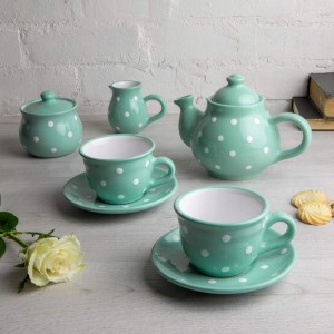 Zestaw do herbaty City to Cottage – ręcznie wykonany, turkusowy, ceramika