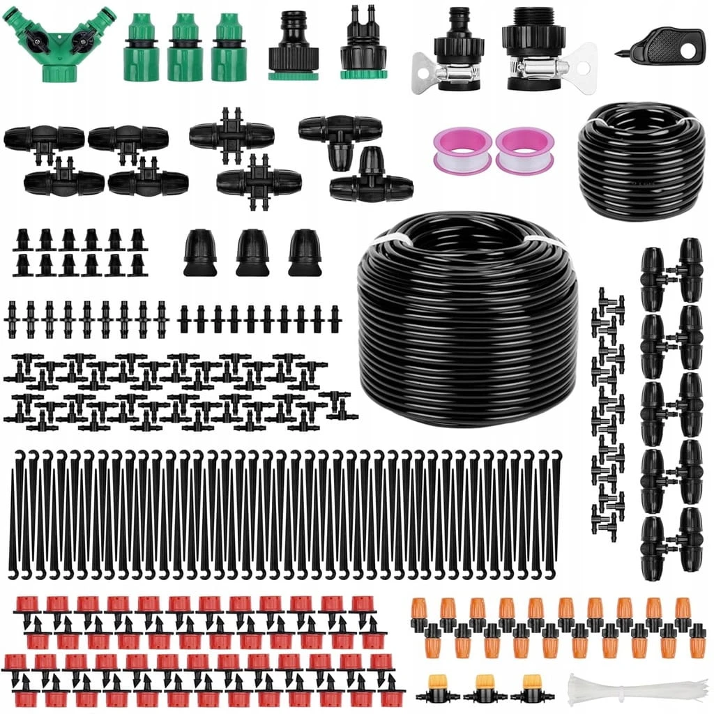 ☑️ ZESTAW DO AUTOMATYCZNEGO NAWADNIANIA: Podlewaj wszystkie rośliny w różnych miejscach jednocześnie dzięki temu automatycznemu zestawowi do nawadniania składającemu się z 340 elementów. W zestawie znajduje się wąż o długości 15 m (49 stóp) i średnicy 8/11 mm, wąż o długości 55 m (180 stóp) i średnicy 4/7 mm, 2 uniwersalne złącza do kranu, 80 kołków/prętów mocujących, 50 opasek kablowych, 124 różne złącza/adaptery.