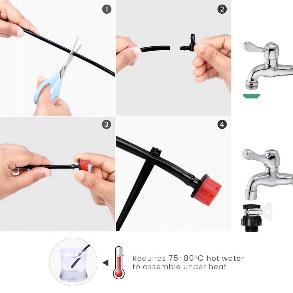 ☑️ RURY ODPORNE NA WARUNKI ATMOSFERYCZNE: Wykonane z wysokiej jakości materiałów odpornych na promieniowanie UV, te rury do dystrybucji wody są trwałe i odporne na warunki atmosferyczne. Montaż tego systemu zraszającego jest szybki i łatwy, bez konieczności kopania ani prac hydraulicznych. Wąż można przyciąć do wymaganej długości.
