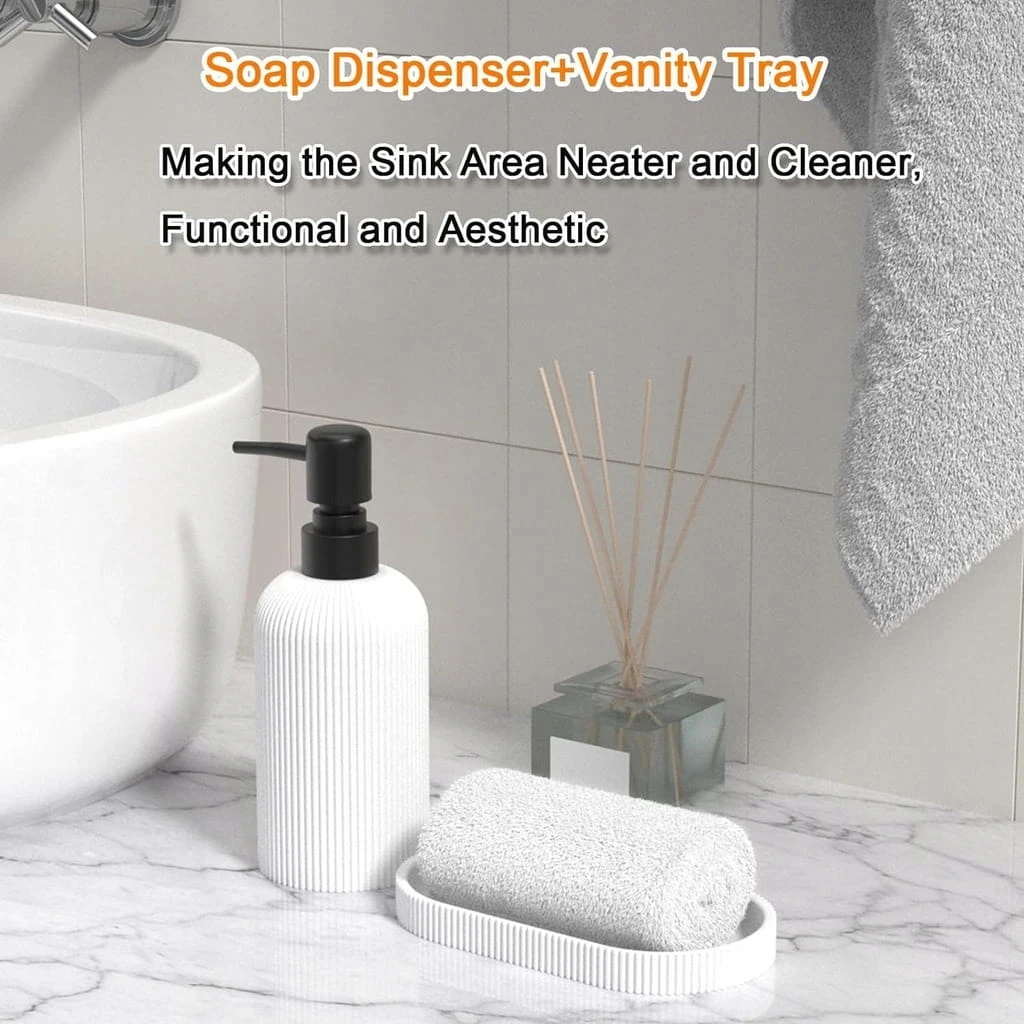 ✅ 3 SZTUK Zestaw akcesoriów łazienkowych. Kompletny zestaw łazienkowy zawiera uchwyt na szczoteczkę do zębów * 1, dozownik mydła * 1, tacę łazienkową * 1. Jego kompaktowy rozmiar idealnie nadaje się na mały blat lub do małej łazienki, ale spełnia potrzeby codziennych przyborów toaletowych. Wyjątkowa pionowa listwa i elegancki kolor idealnie komponują się z wystrojem łazienki.