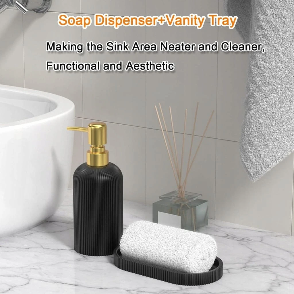 ✅ 3 SZTUK Zestaw akcesoriów łazienkowych. Kompletny zestaw łazienkowy zawiera uchwyt na szczoteczkę do zębów * 1, dozownik mydła * 1, tacę łazienkową * 1. Jego kompaktowy rozmiar idealnie nadaje się na mały blat lub do małej łazienki, ale spełnia potrzeby codziennych przyborów toaletowych. Wyjątkowa pionowa listwa i elegancki kolor idealnie komponują się z wystrojem łazienki.