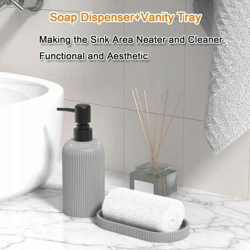 ✅ 3 SZTUK Zestaw akcesoriów łazienkowych. Kompletny zestaw łazienkowy zawiera uchwyt na szczoteczkę do zębów * 1, dozownik mydła * 1, tacę łazienkową * 1. Jego kompaktowy rozmiar idealnie nadaje się na mały blat lub do małej łazienki, ale spełnia potrzeby codziennych przyborów toaletowych. Wyjątkowa pionowa listwa i elegancki kolor idealnie komponują się z wystrojem łazienki.